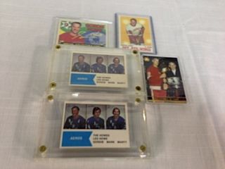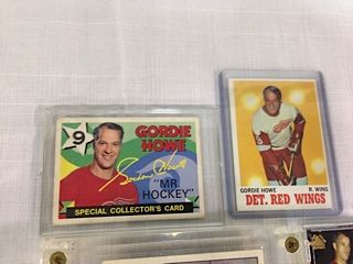 LOT OF GORDIE HOWE MEMORABILLIA INCL 2 CASED GORDIE, MARK & MARTY CARDS, A HOCKEY HALL OF FAME CARD SET, A MR. HOCKEY SPECIAL COLLECTOR CARD & 1969/70 SEASON CARD