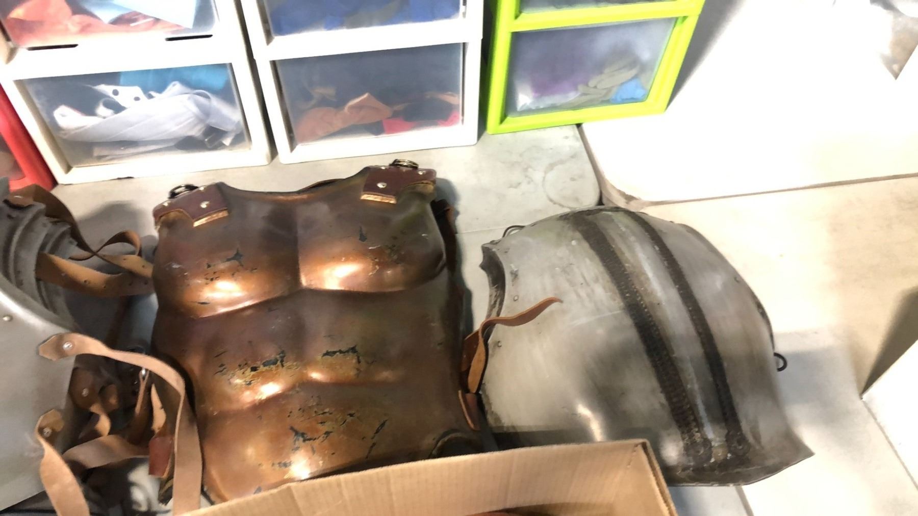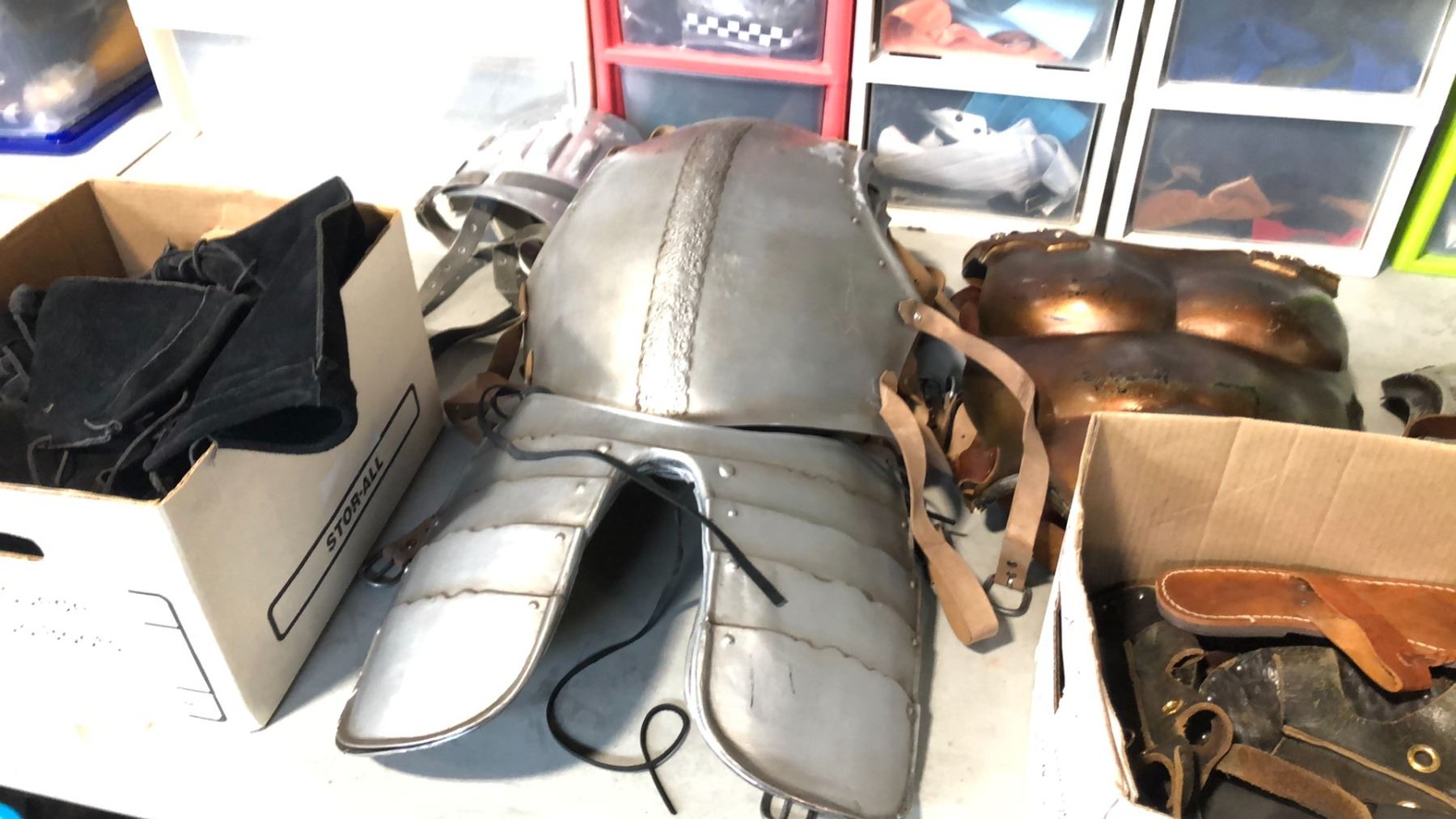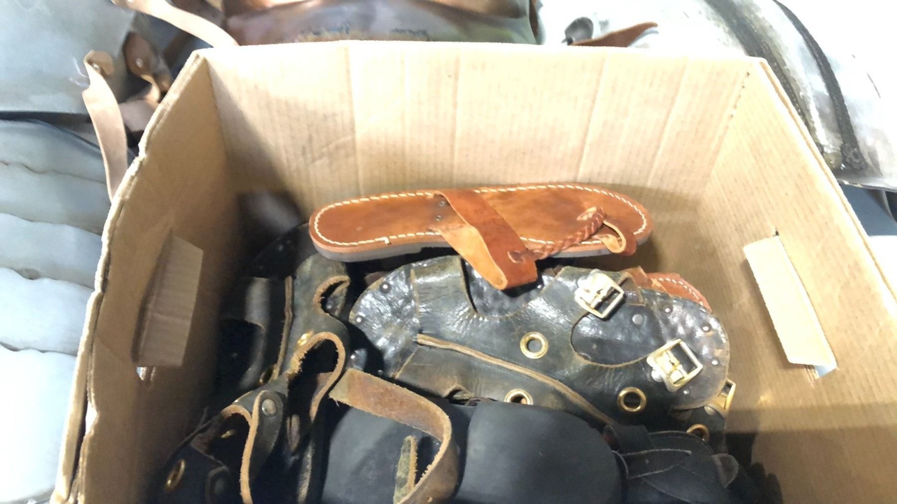 LOT OF GREEK & ROMAN LEATHER SANDALS, MOLDED TORSO ARMOR & MORE