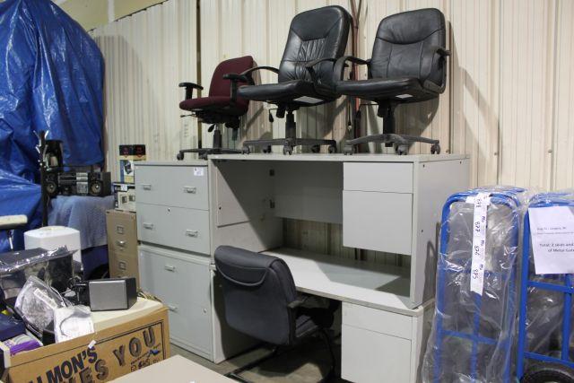 LOT OF GREY OFFICE FURNITURE CHAIRS & FILE CABINET