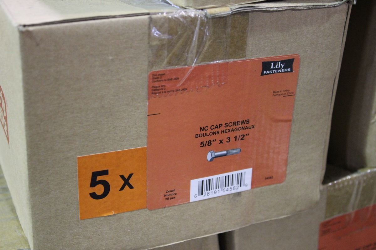LOT OF GRIP RITE 5/8 X 3 1/2" NC CAP SCREWS (24 BOXES)