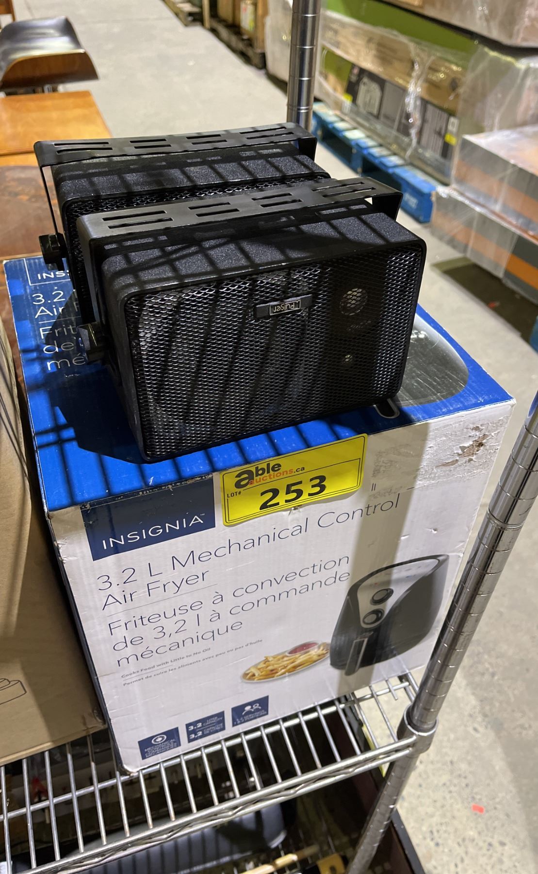 LOT OF INSIGNIA 3.2L MECHANICAL CONTROL AIRFRYER, ULTRA VIOLET LIGHT AND 2 PULSER SPEAKERS