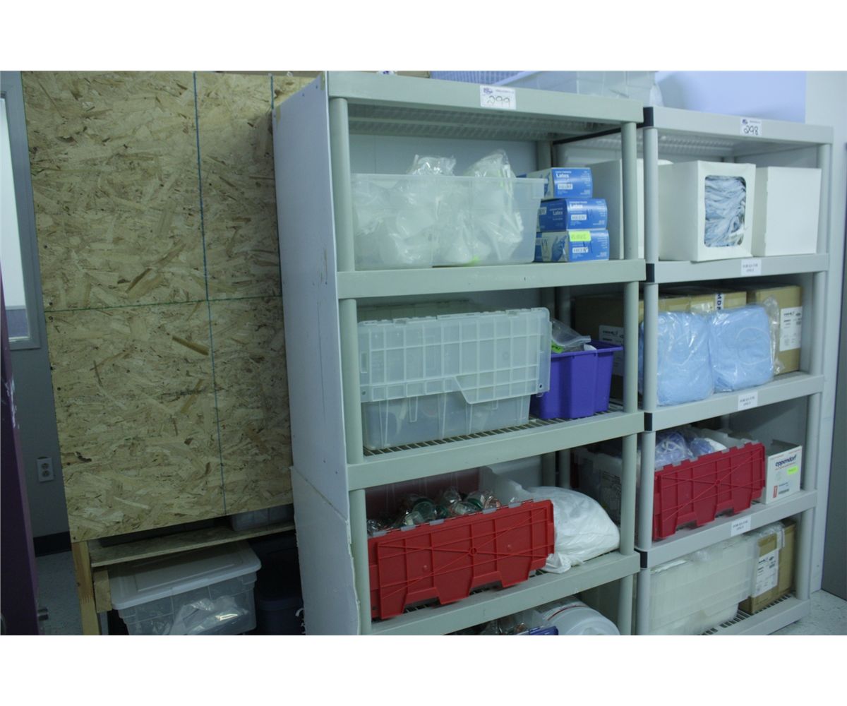 LOT OF MEDICAL DISPOSABLES AND PLASTIC SHELF