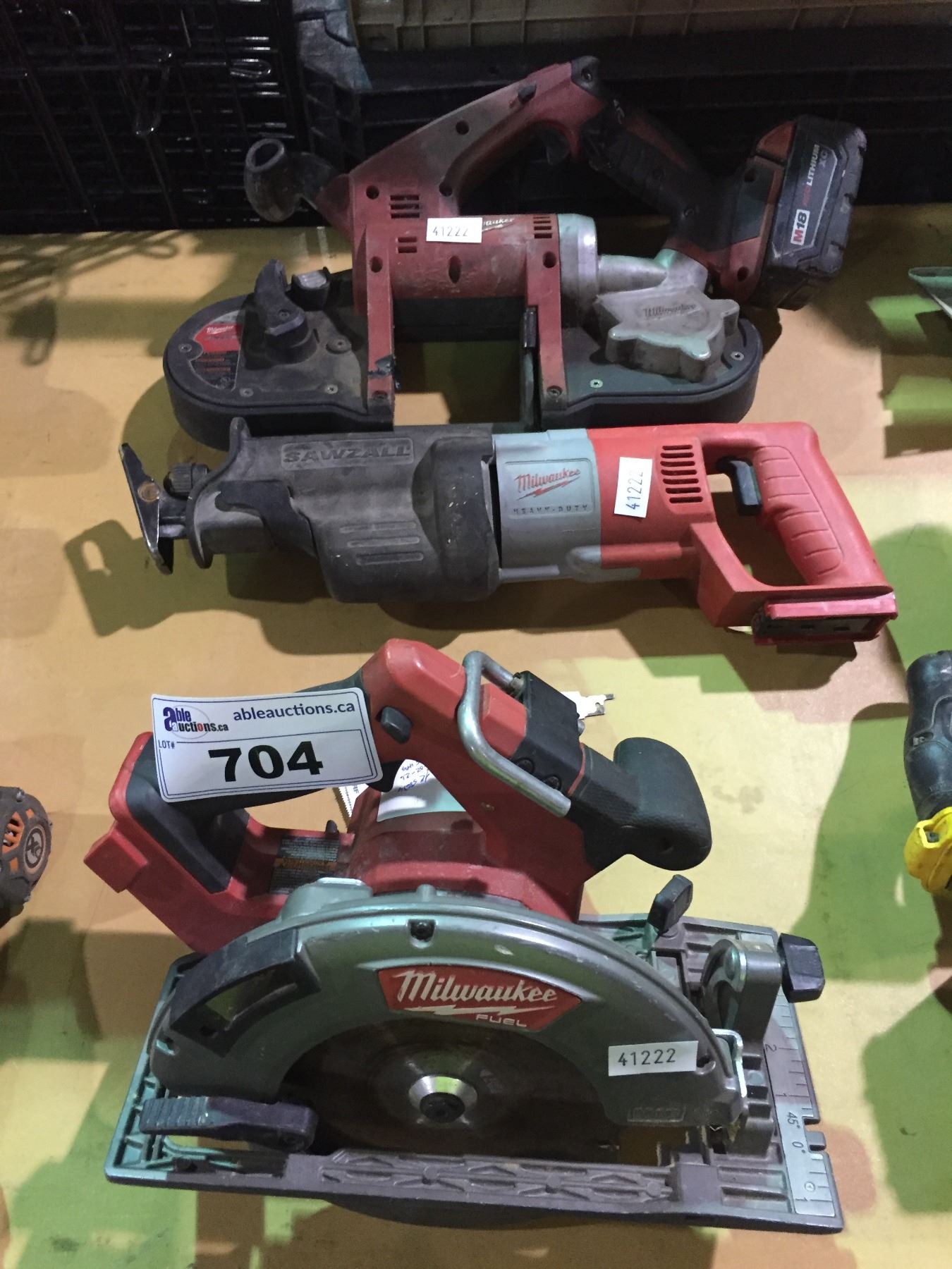 LOT OF MILWAUKEE M18 CORDLESS POWER TOOLS INCLUDING SAWZALL, 7-1/4" CIRCULAR SAW, DEEP CUT BANDSAW, BATTERY AND REPLACEMENT SAWZALL BLADES