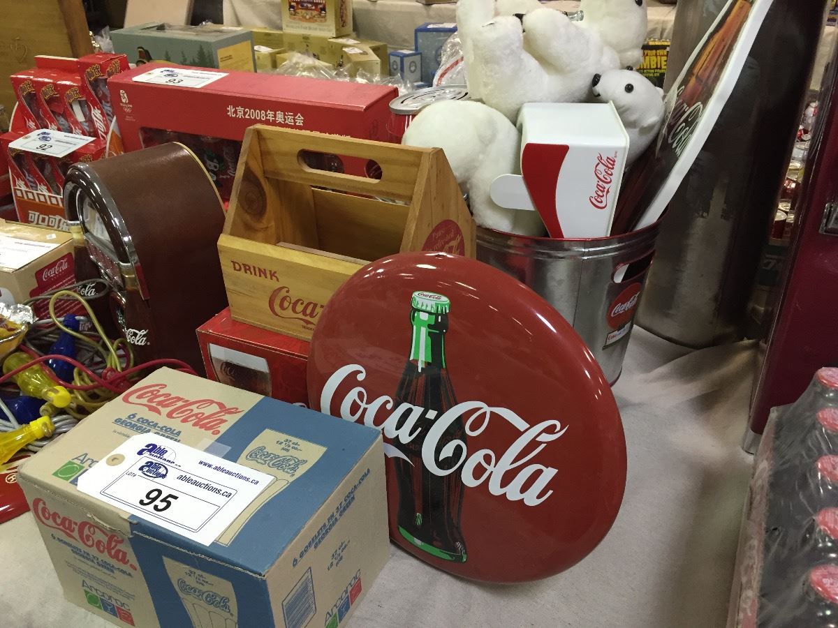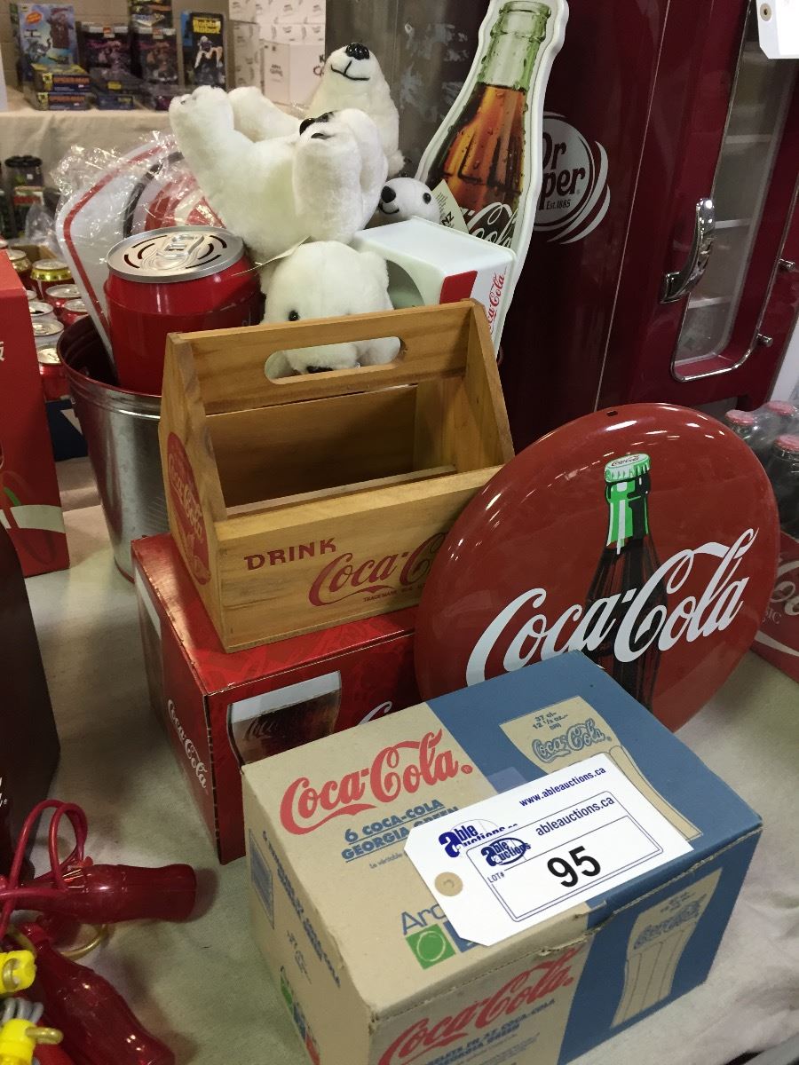 LOT OF MISC. COCA-COLA COLLECTABLES INCLUDING: ICE BUCKET, POLAR BEAR, COKE BUTTON & MORE