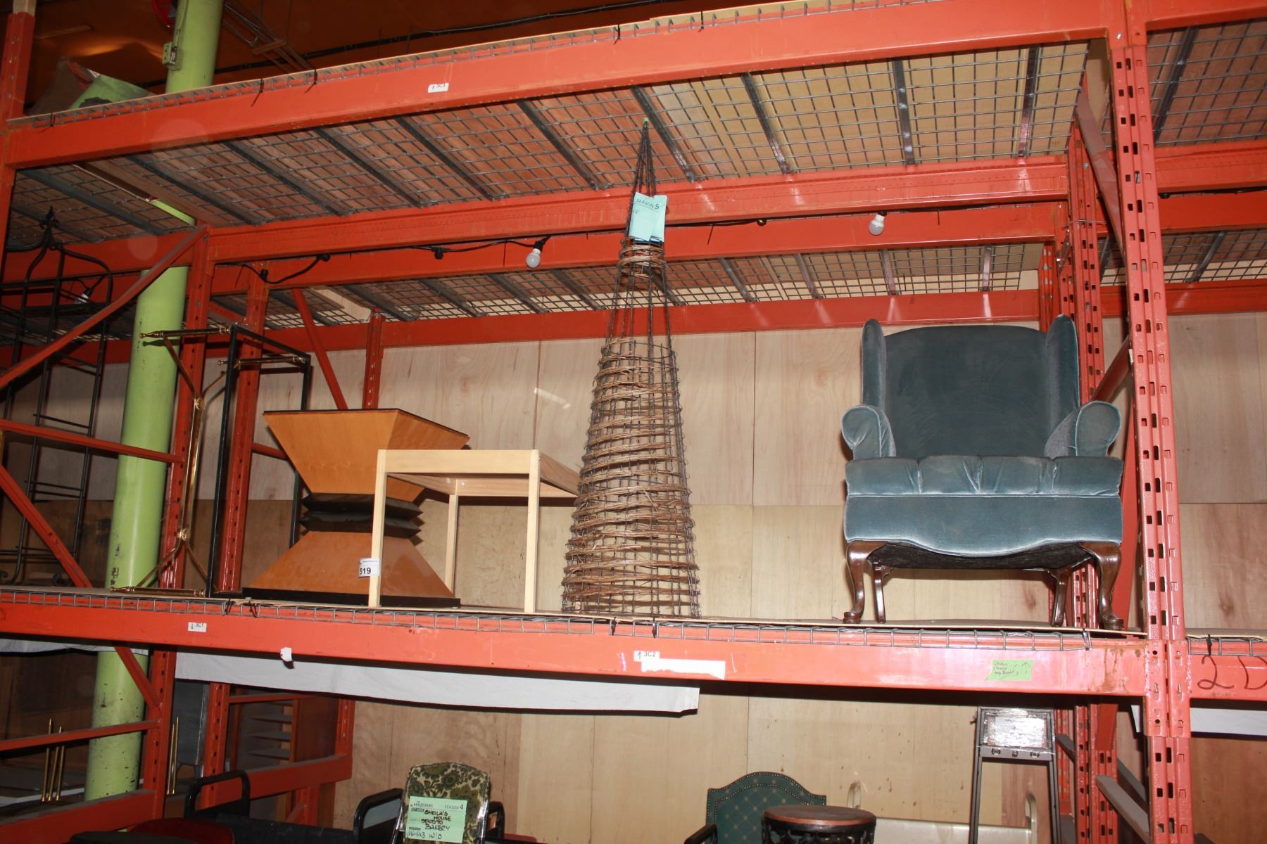 LOT OF MISC FURNITURE ON PALLET RACKING