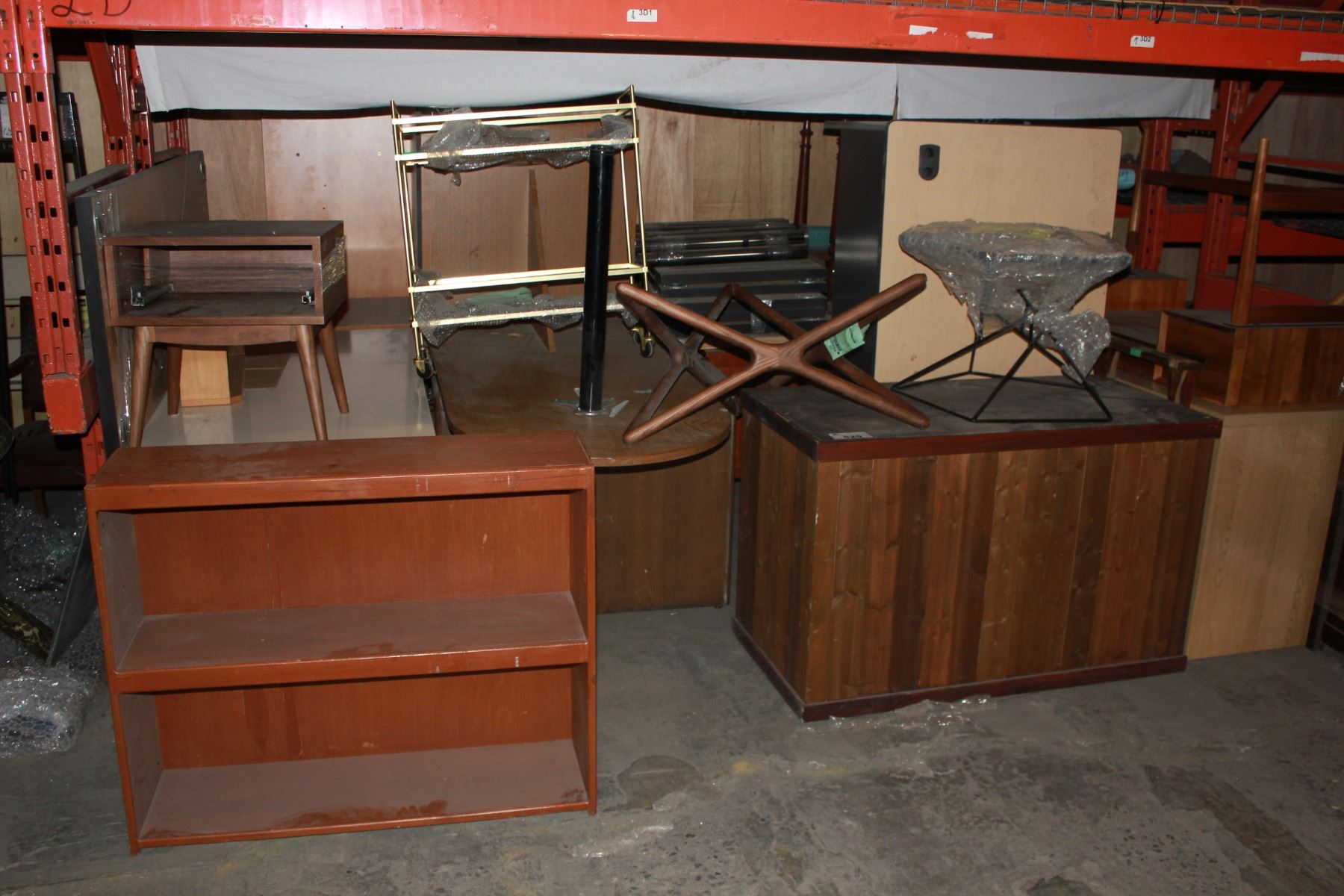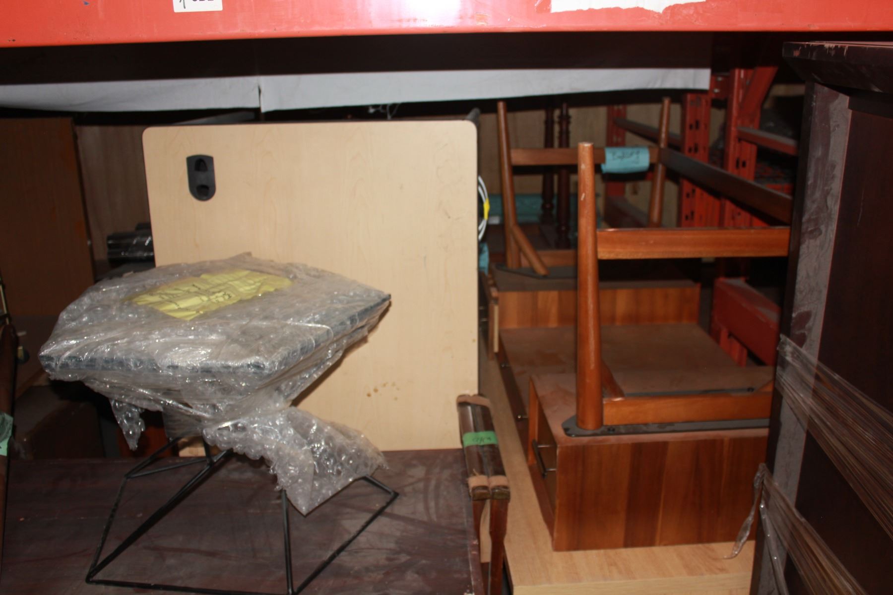 LOT OF MISC FURNITURE UNDER PALLET RACKING