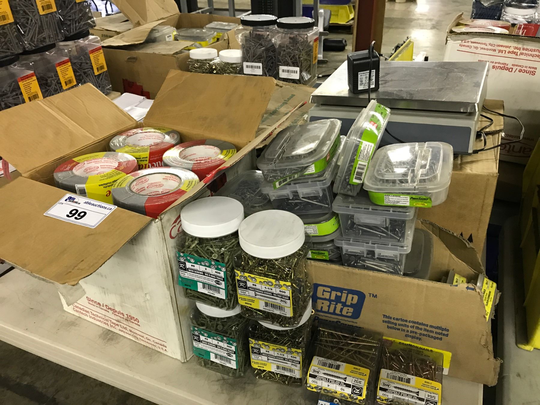 LOT OF MISC. SCREWS, NAILS AND DUCT TAPE