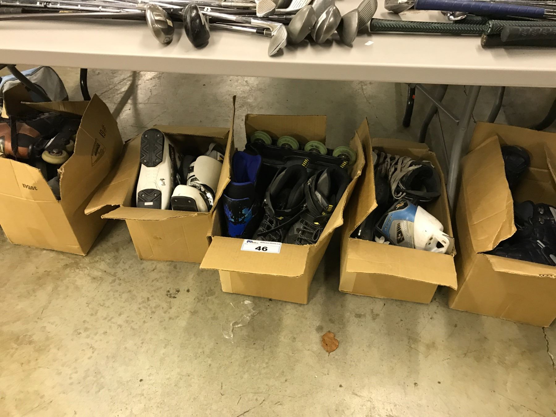 LOT OF MISC. SNOWBOARD BOOTS, SKI BOOTS AND ROLLER BLADES