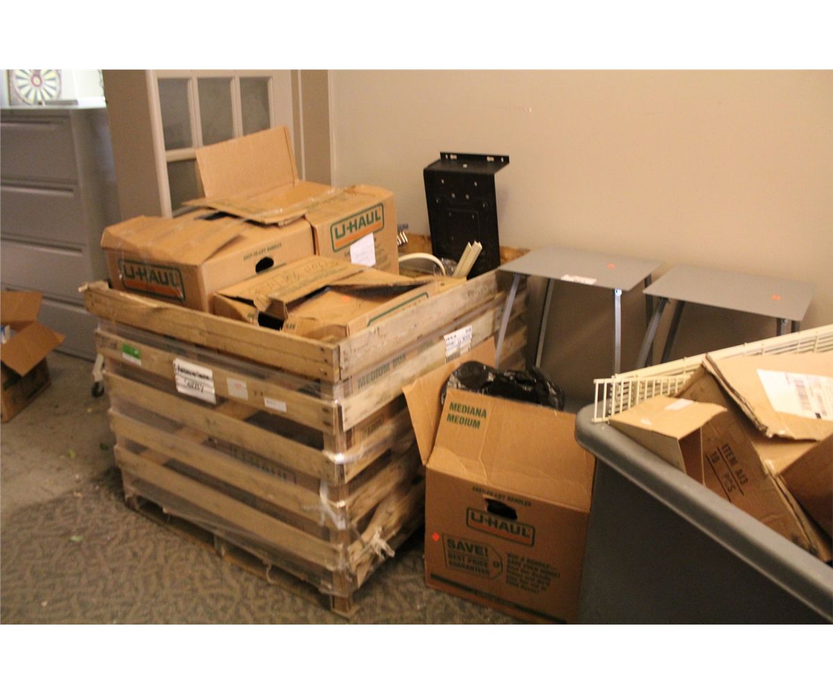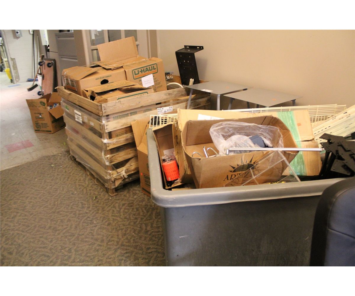 LOT OF MISC. STORE FIXTURES AND ASSORTED ITEMS. BIN NOT INCLUDED.