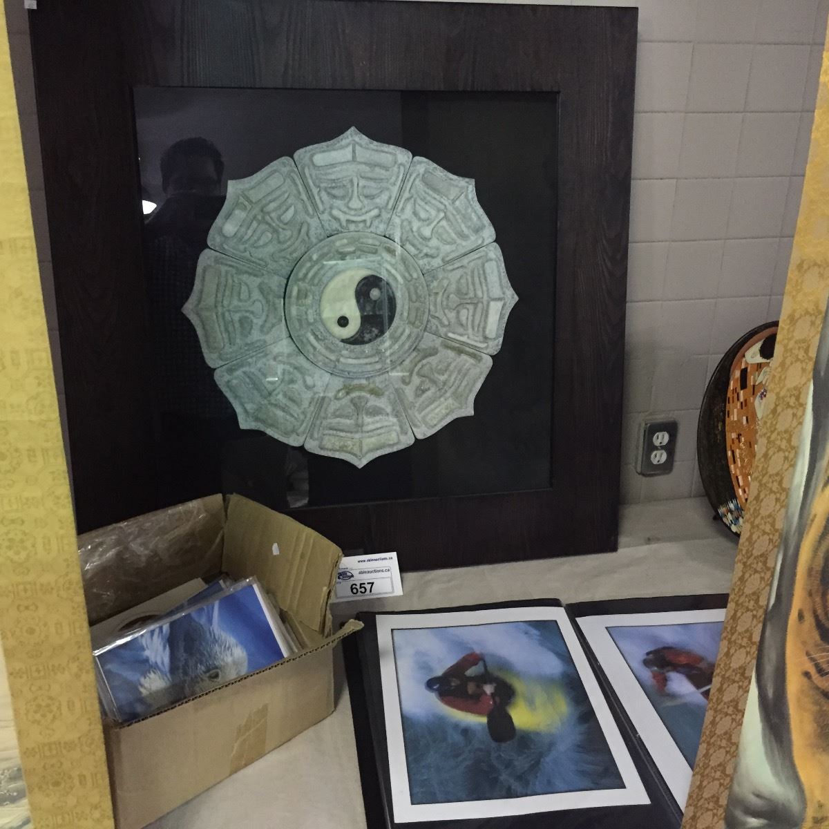 LOT OF NATIVE ART CARDS, PHOTOGRAPHS AND FRAMED ASIAN YIN AND YANG ARTWORK