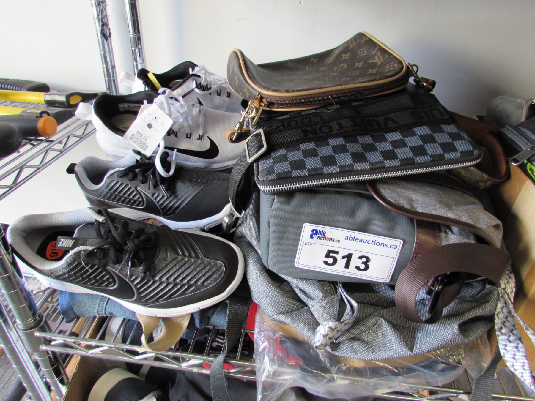 LOT OF NIKE SHOES, HAND BAGS, BACK PACKS, ETC