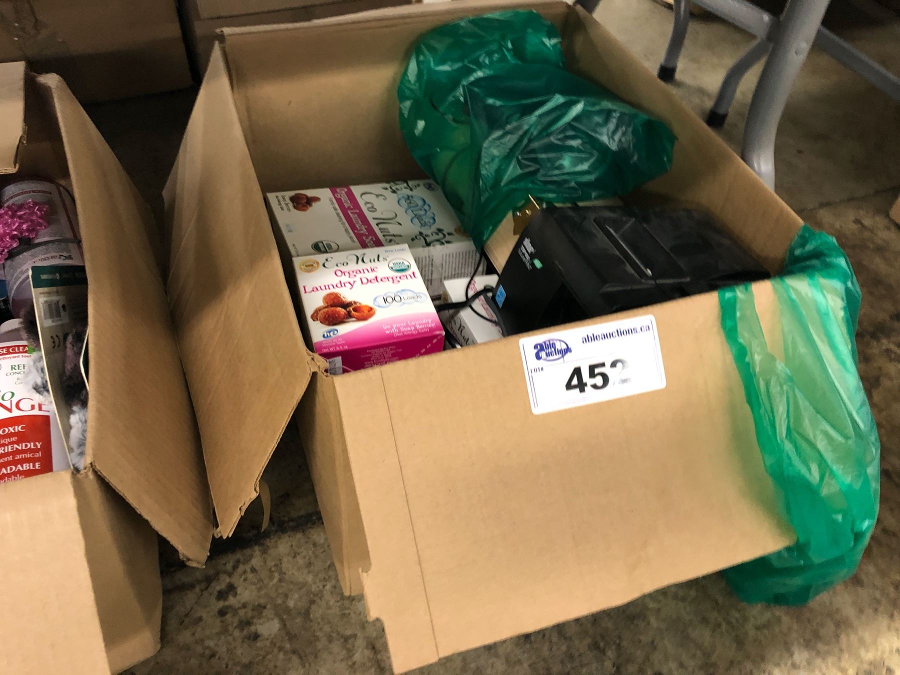 LOT OF ORGANIC LAUNDRY PRODUCTS AND A LINE PRINTER