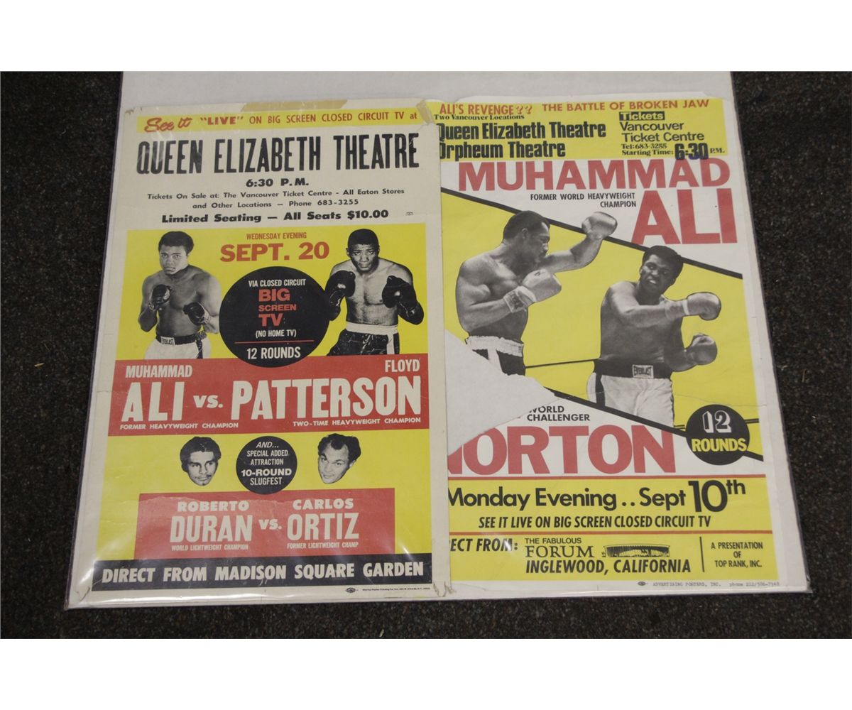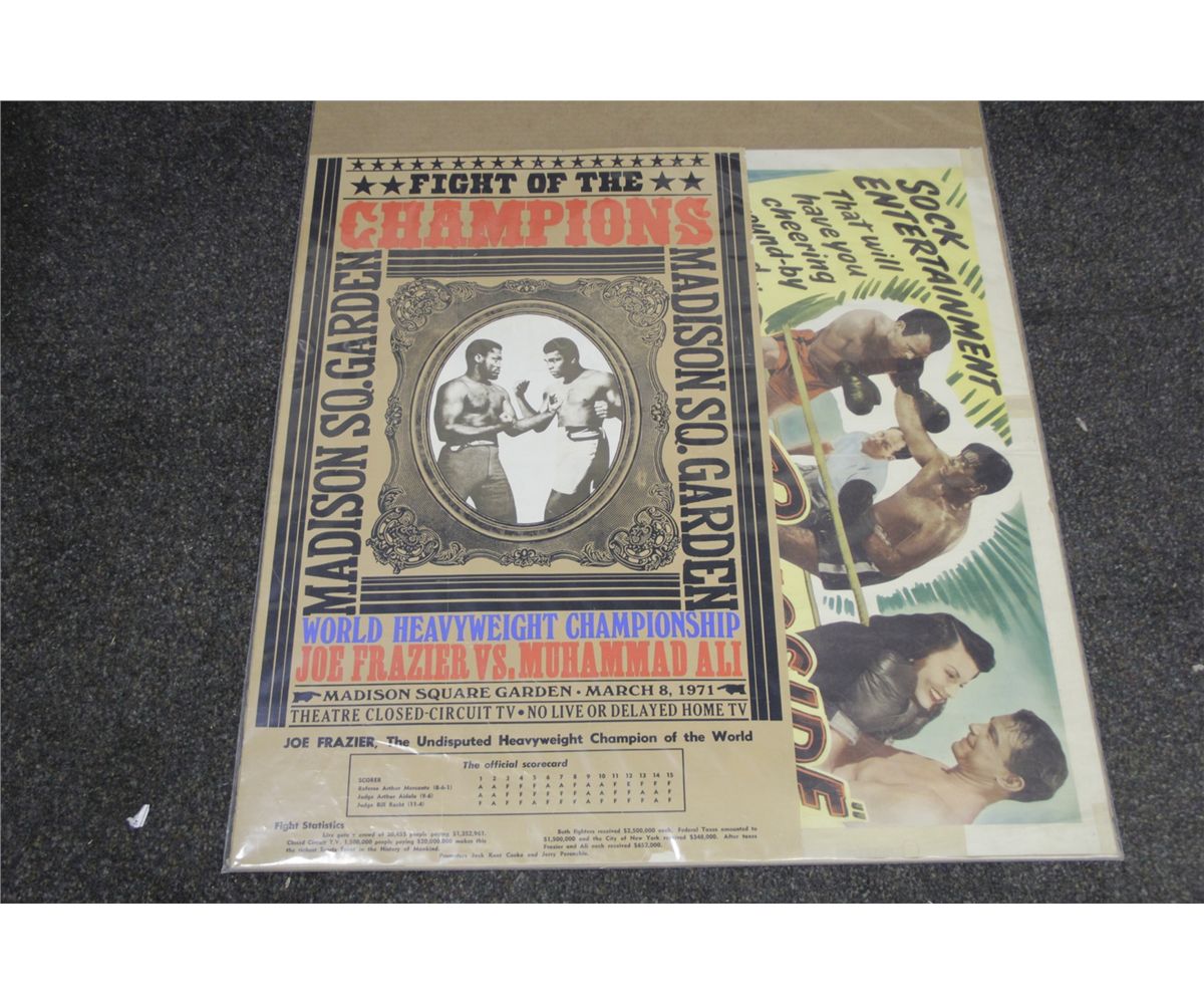 LOT OF ORIGINAL BOXING POSTERS INCL. MUHAMMAD ALI vs. FLOYD PATTERSON (ROBERTO DURAN ON THE UNDERCARD), MUHAMMAD ALI vs. KEN NORTON (POOR), MUHAMMAD ALI vs. JOE FRAZIER (COMMEM.), RINGSIDE HALF SHEET (1959)