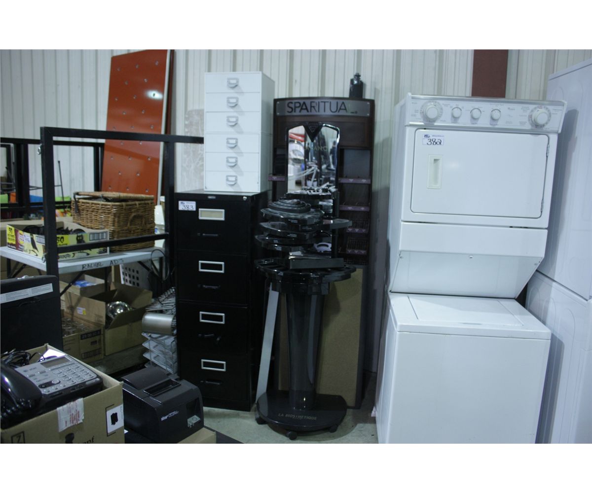 LOT OF PRODUCT DISPLAYS AND FILE CABINET