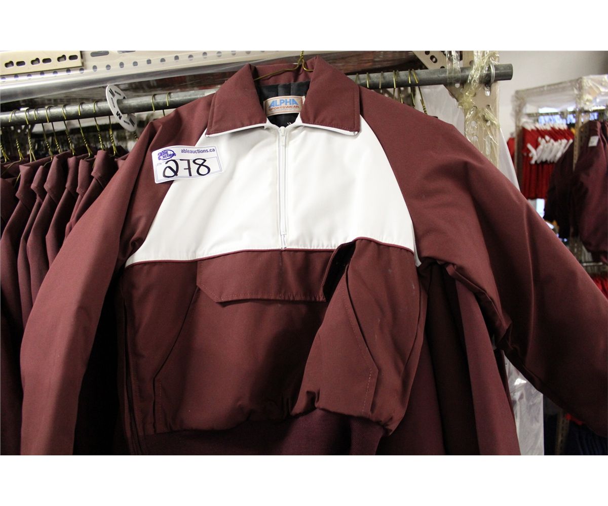 LOT OF QUILTED BURGANDY/WHITE JACKETS. 109 TOTAL SOLD PER JACKET, MUST TAKE ALL.