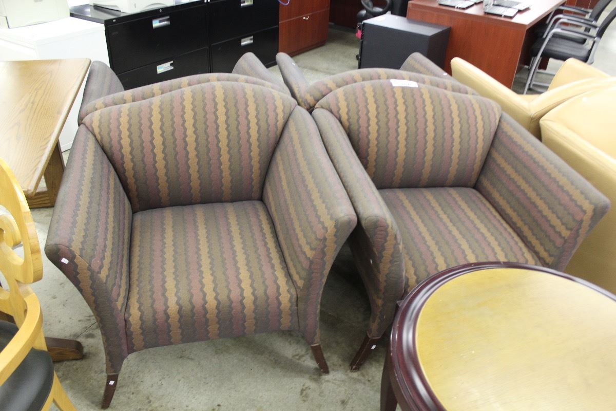 LOT OF RECEPTION FURNITURE INC. 4 SOFA CHAIRS, SIDE CHAIR, COFFEE TABLE AND HALL TABLE