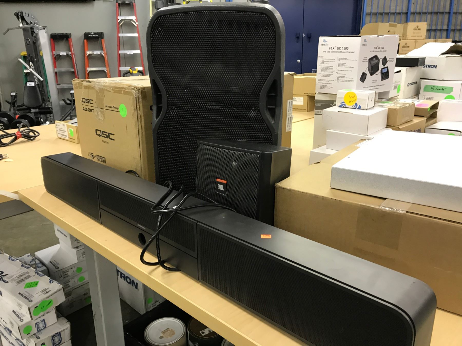 LOT OF SPEAKERS AND 1 BIAMP UNIT