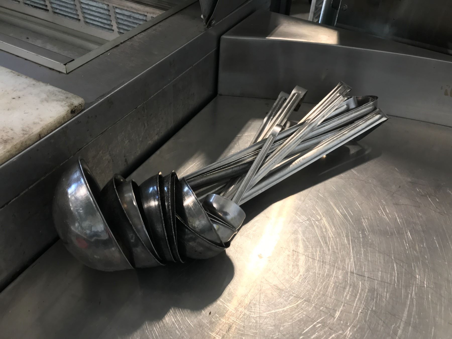 LOT OF STAINLESS STEEL BOWLS, LADLES AND UTENSILS