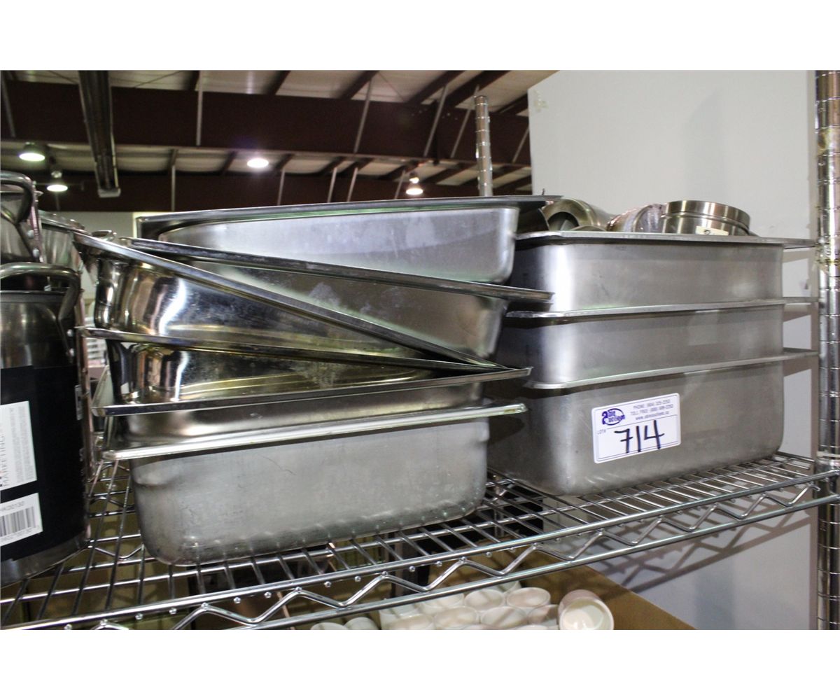 LOT OF STAINLESS STEEL PANS & RESTAURANT ITEMS