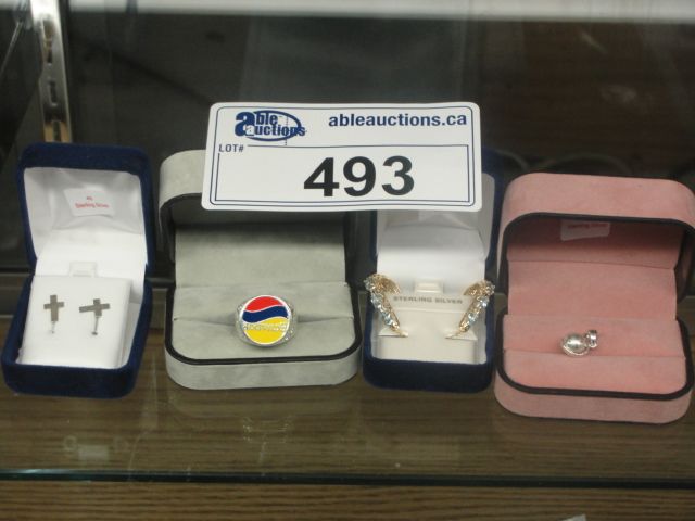 LOT OF STERLING SILVER JEWELLERY; 2 PAIRS EARRINGS, 1 RING, 1 NECKLACE PENDANT