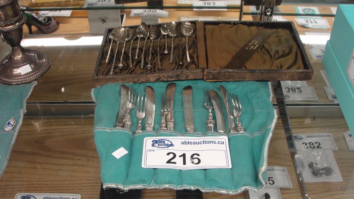 LOT OF STERLING SILVER TEA SPOONS, BREAD AND BUTTER KNIVES, FORK SETS, ETC
