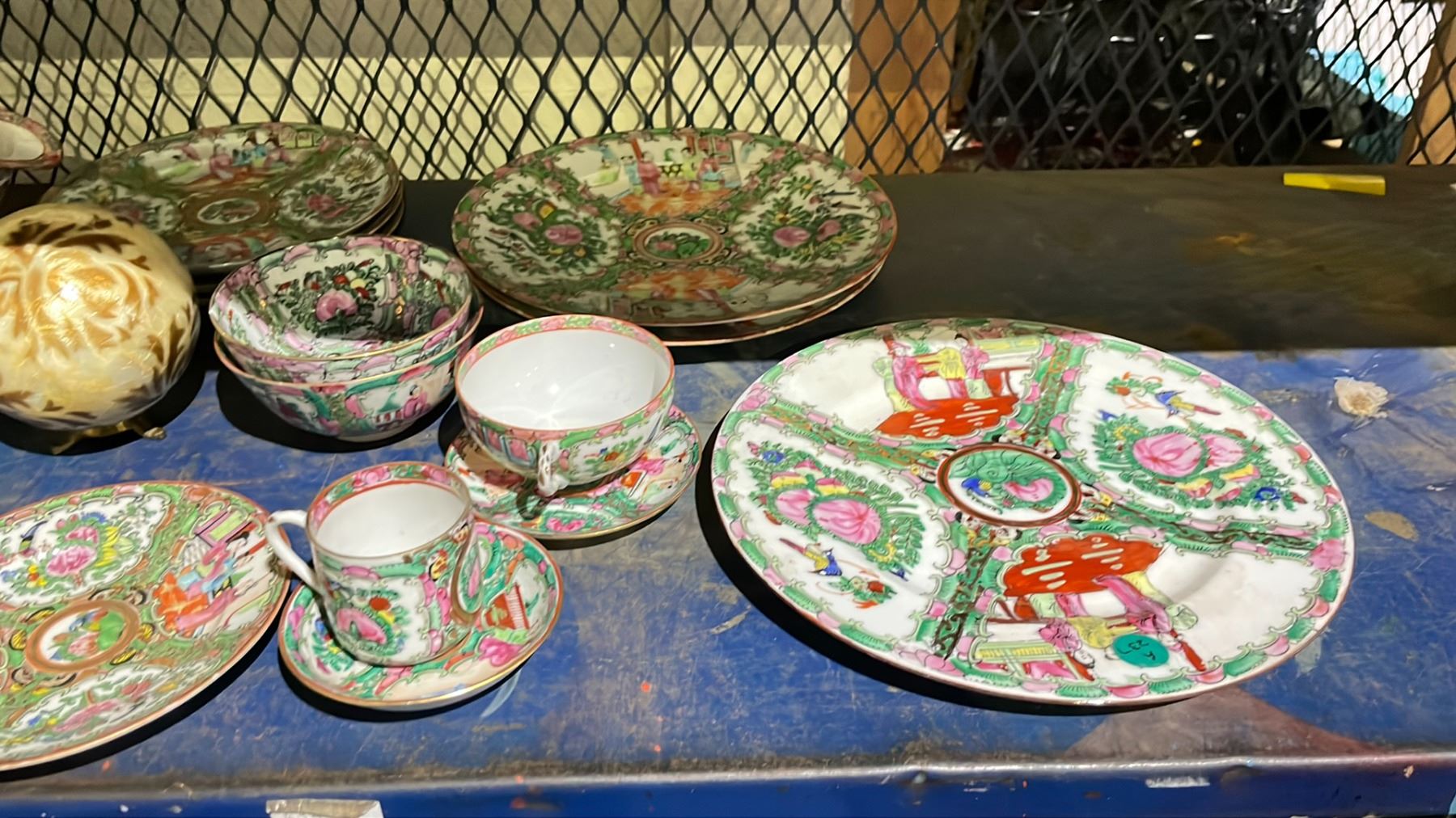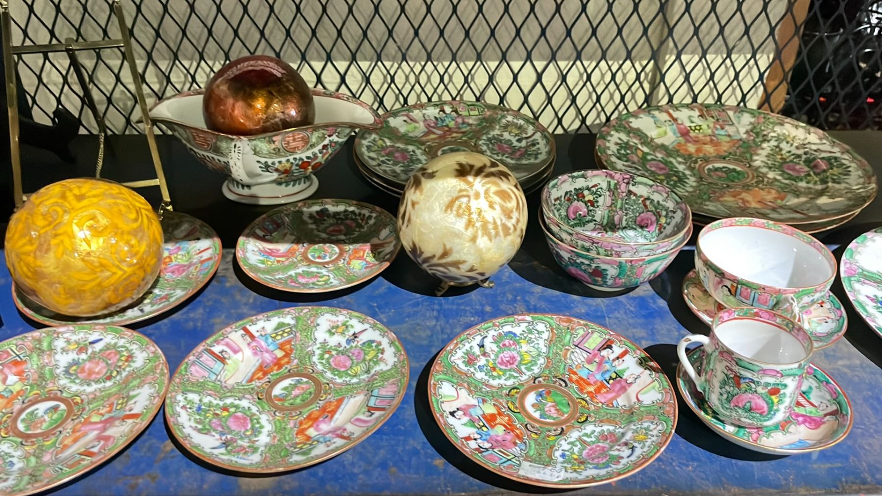LOT OF TEA CUPS, PLATES, DECOR, DISPLAY STANDS AND MORE