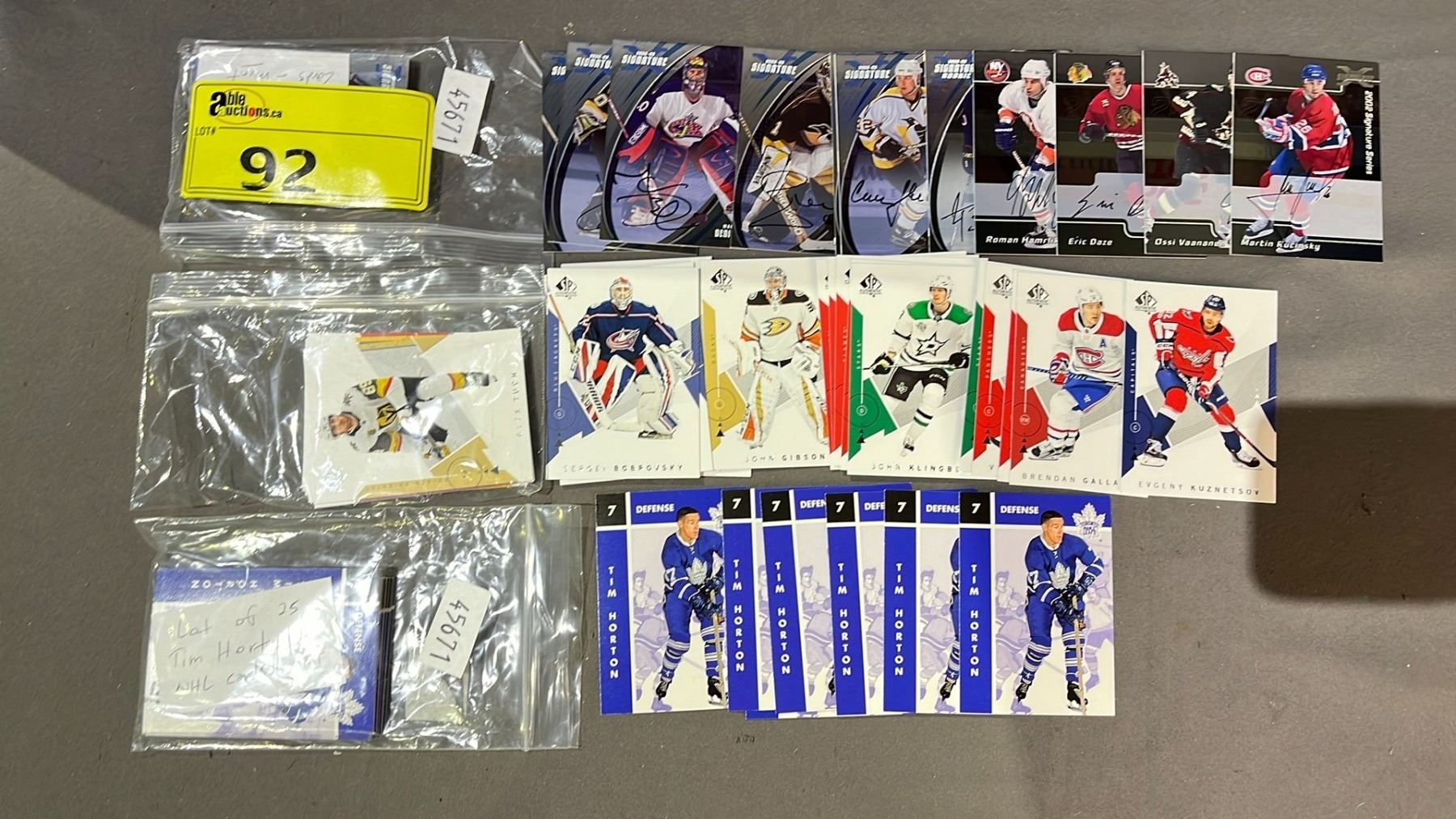 LOT OF TIM HORTON HOCKEY CARDS, 2002-03 ITG SIGNED HOCKEY CARDS & MORE