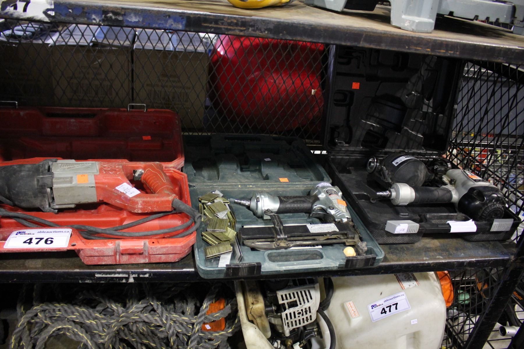 LOT OF TOOLS INCLUDING MILWAUKEE AND MAKITA RECIPROCATING SAWS, HITACHI STAPLER AND ROK ROOFING NAILER