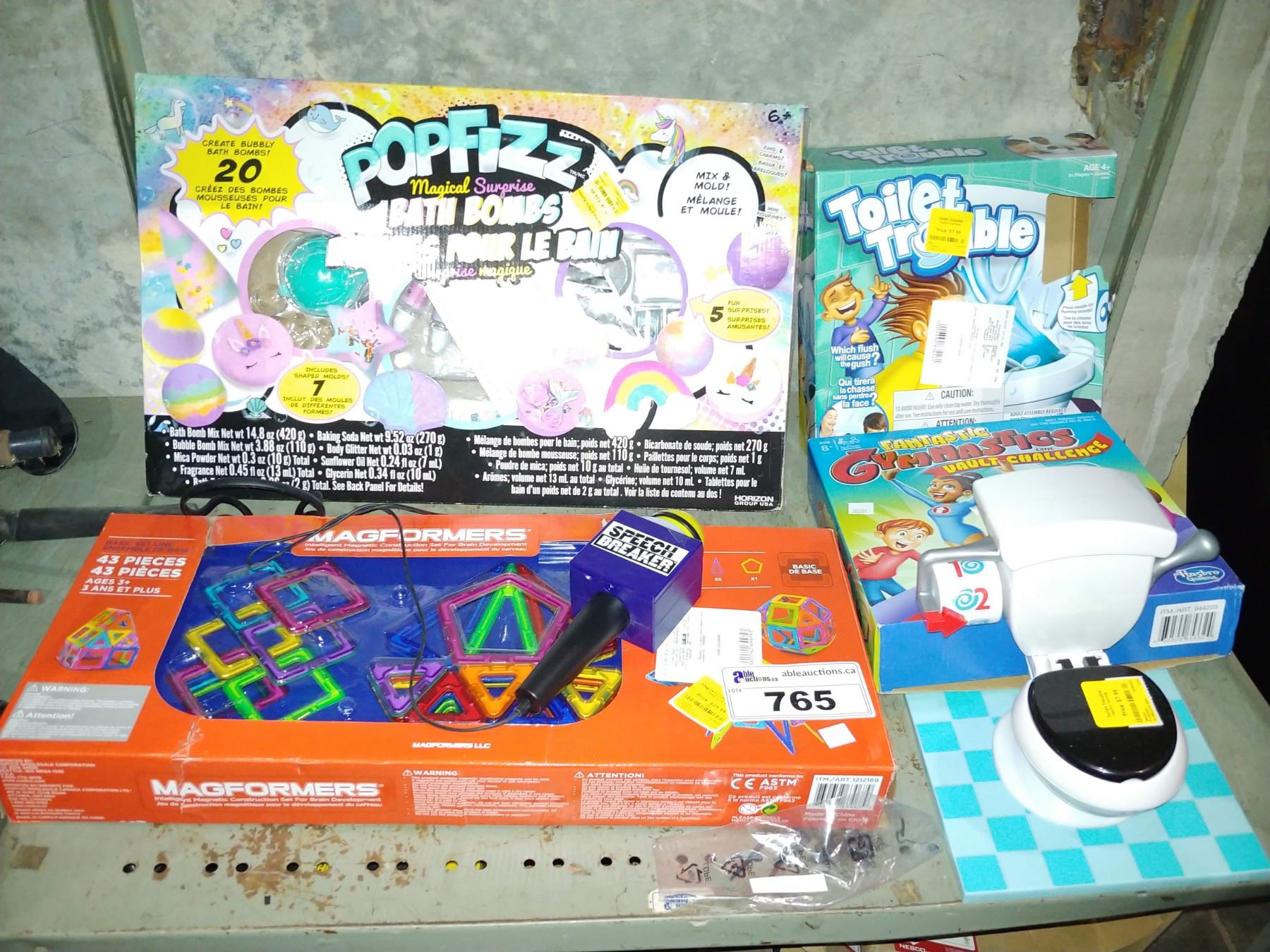 LOT OF TOYS INCLUDING TOILET TROUBLE, MAGFORMERS, SPEECH BREAKER AND FANTASTIC GYMNASTICS