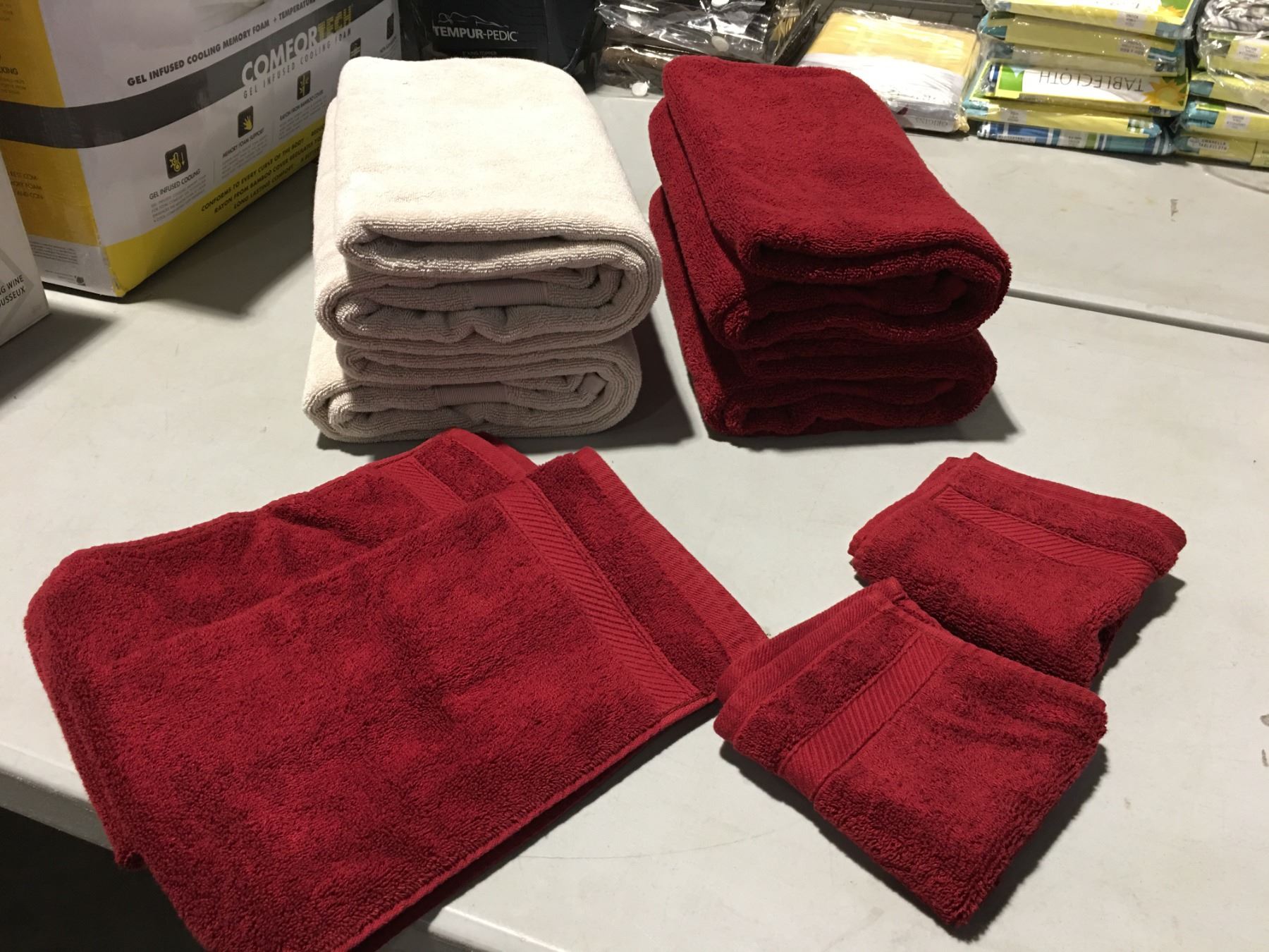 LOT OF WAMSUTTA CLASSIC TURKISH BATH TOWELS (RED & BEIGE) 4 BATH TOWELS, 2 HAND TOWELS & 2 FACE CLOTHS