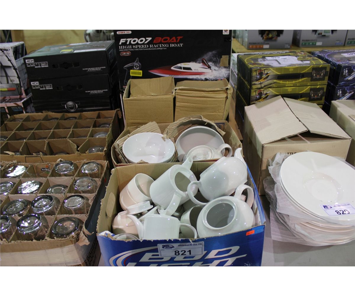 LOT OF WHITE RESTURANT TEA POTS, CUPS & BOWLS