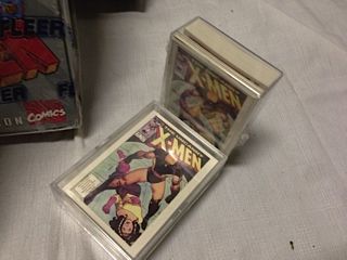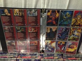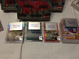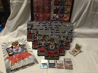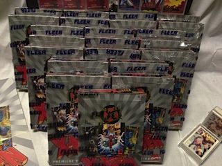 LOT OF X-MEN TRADING CARDS INC.: 22 FACTORY SEALED FLEER X-MEN PREMIUM BOXES - BINDER OF '95 FLEER TADING CARDS - PLUS SEVERAL SEALED DECKS