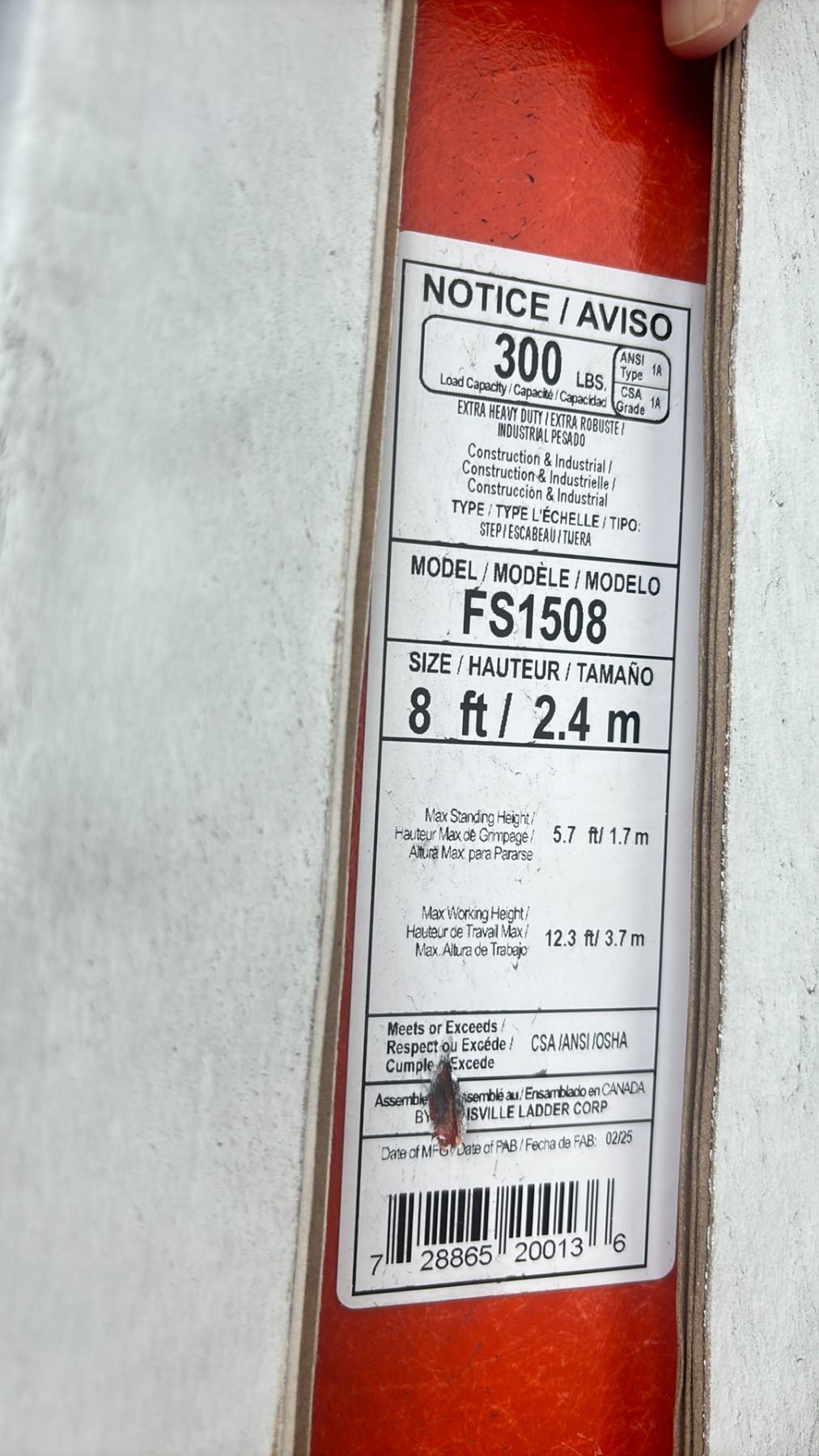 LOUISVILLE FS1508 FIBREGLASS/ ALUMINUM STEP LADDER WITH A 300 LB MAX CAPACITY