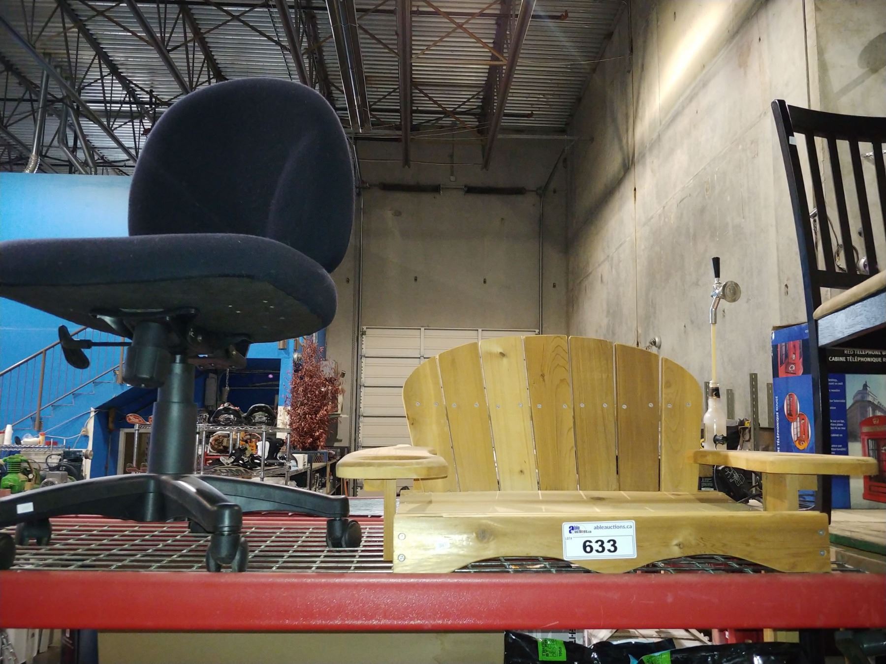 LOW WOOD CHAIR AND ROLLING OFFICE CHAIR