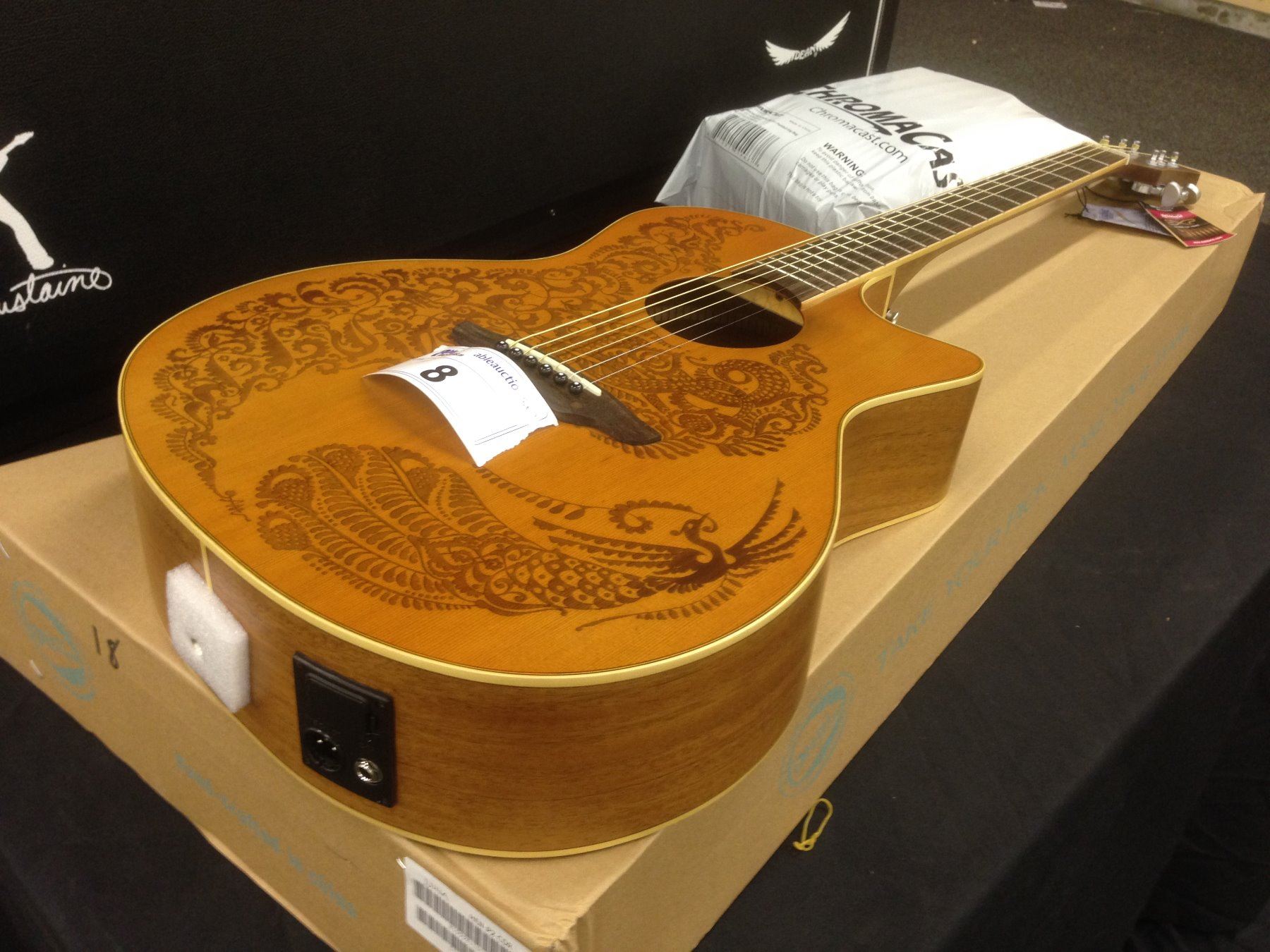 LUNA CUTAWAY ELECTRIC ACOUSTIC GUITAR WITH BIRD AND FERN DESIGN AND SOFT SHELL CASE