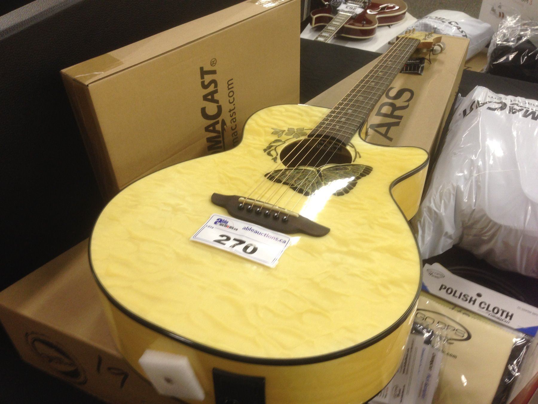 LUNA CUTAWAY ELECTRIC ACOUSTIC GUITAR WITH BUTTERFLY DESIGN AND SOFT SHELL CASE