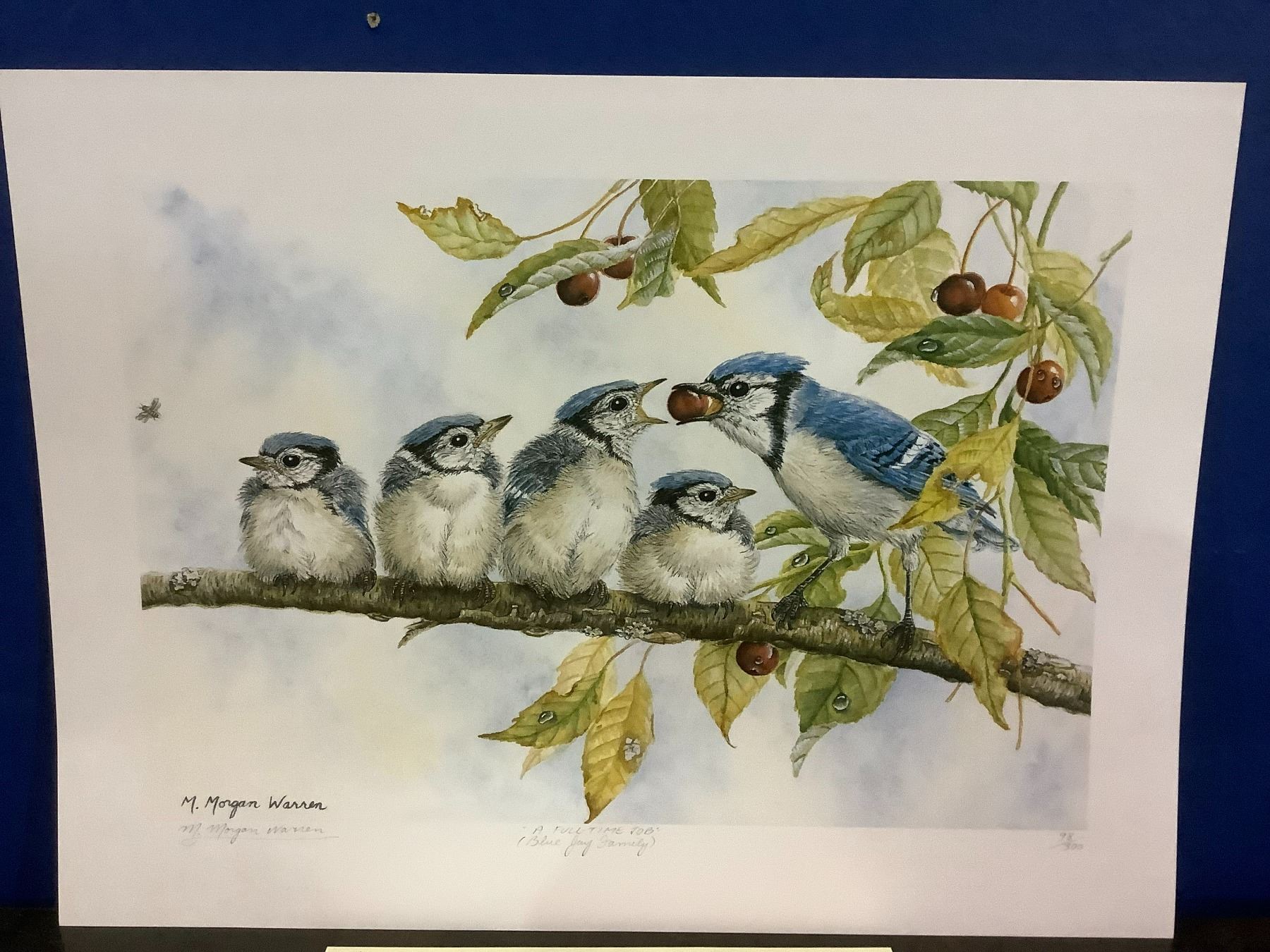 M.MORGAN WARREN ARTIST SIGNED LEP 98/300 WITH COA TITLED "A FULL TIME JOB" (BLUE JAY FAMILY)