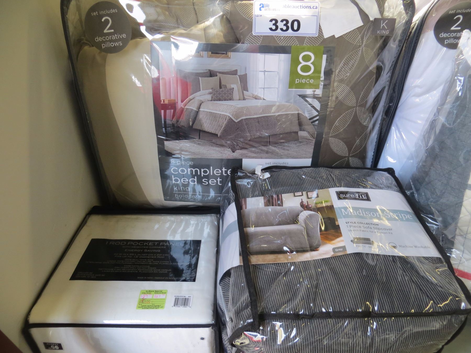 MADISON STRIPE SOFA SLIPCOVER/60X95" POCKET PANEL/HOLDEN 8 PIECE KING BED SET