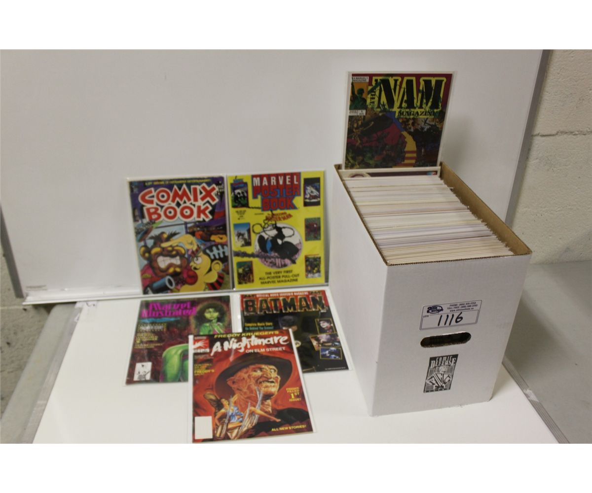 MAGAZINE BOX LOT OF MIXED TITLES.  INCLUDES PHANTACEA #1 X 2 COPIES (EARLY DAVE SIMART) & MANY OTHER NEAT MAGS.  MIXED GRADES, SOLID BOOKS.
