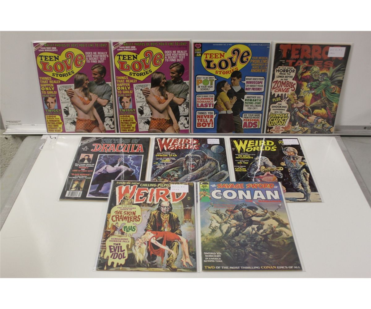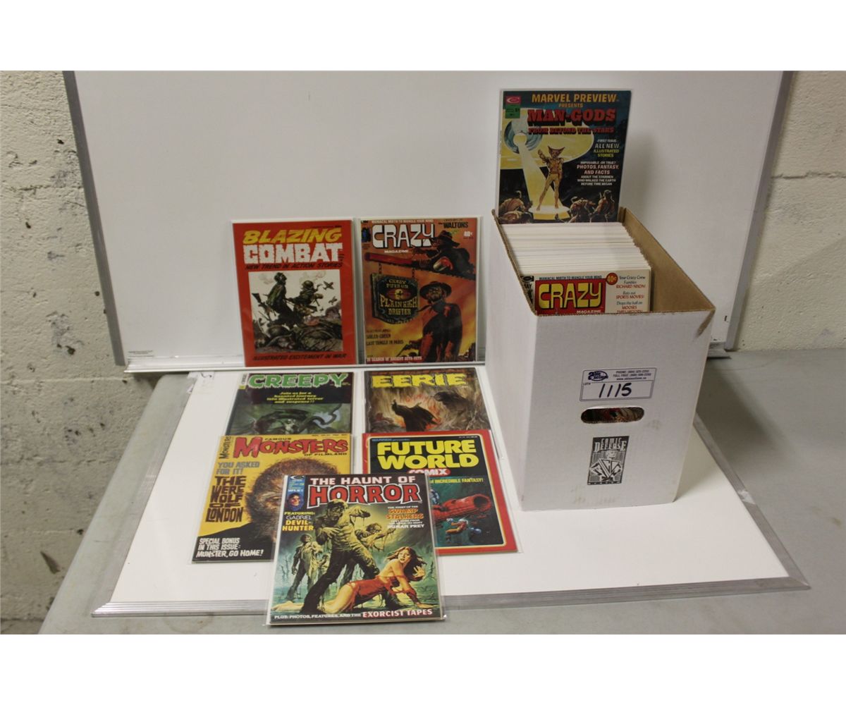 MAGAZINE HIGH END BOOKS, SHARP COPIES BOX LOT. INCLUDES SAVAGE SWORD OF CONAN#1, BLAZING COMBAT#2, EERIE #2, ETC.  2013 OVERSTREET TOP END GUIDE VALUE OF OVER $2,500.  TONS OF VALUE HERE, NICE BOOKS, CHOICE BOX!