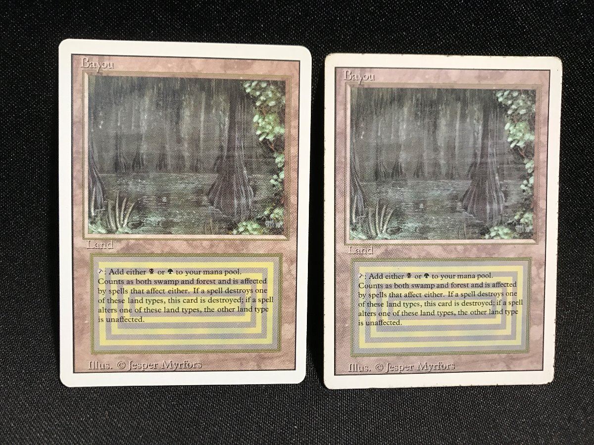 MAGIC THE GATHERING, PAIR OF COLLECTABLE CARDS INCLUDING: REVISED BAYOU NEAR MINT CONDITION AND REVISED BAYOU MODERATELY PLAYED CONDTION