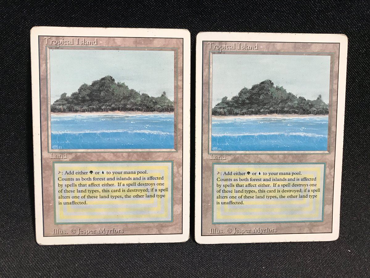 MAGIC THE GATHERING, PAIR OF COLLECTABLE CARDS INCLUDING: 2 X REVISED TROPICAL ISLAND MODERATELY PLAYED CONDITION