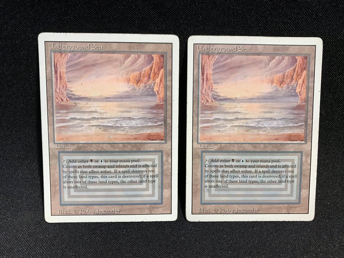MAGIC THE GATHERING, PAIR OF COLLECTABLE CARDS INCLUDING: 2 X REVISED UNDERGROUND SEA MODERATELY PLAYED CONDITION