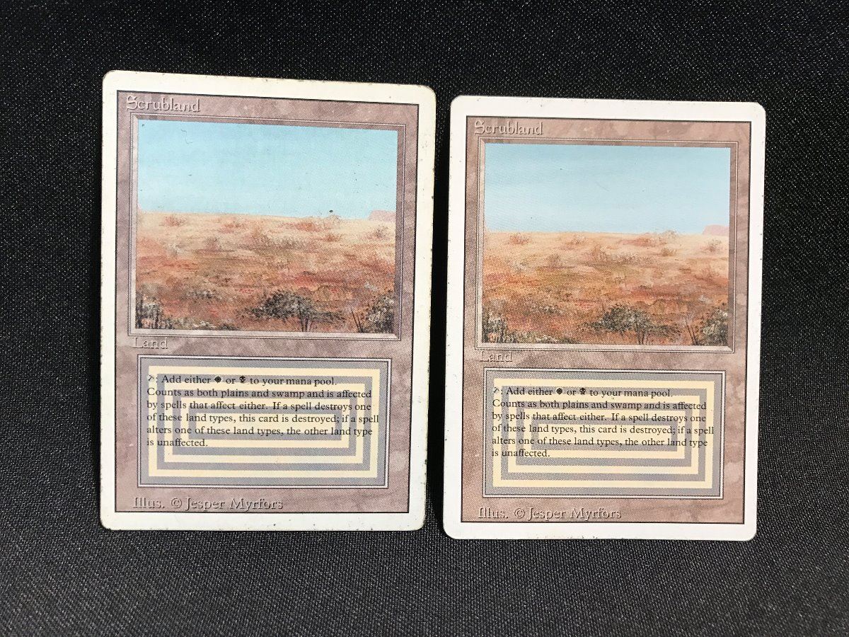 MAGIC THE GATHERING, PAIR OF COLLECTABLE CARDS INCLUDING: 2 X REVISED SCRUBLAND MODERATELY PLAYED CONDITION