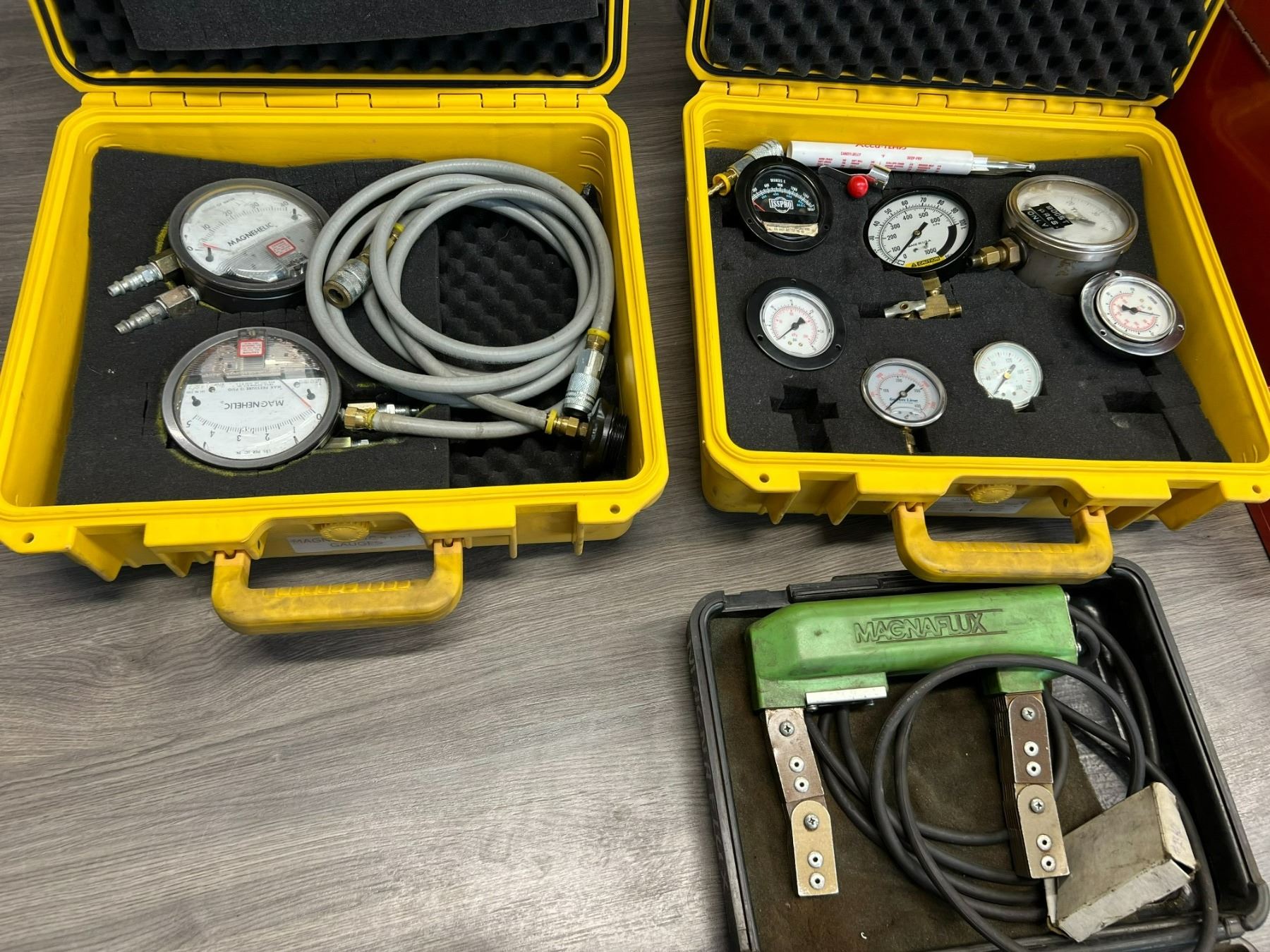 MAGNEHELIC TEST KIT. 3 CASES INC. GAUGES, HOSES, ETC SPECIALTY TEST TOOLS