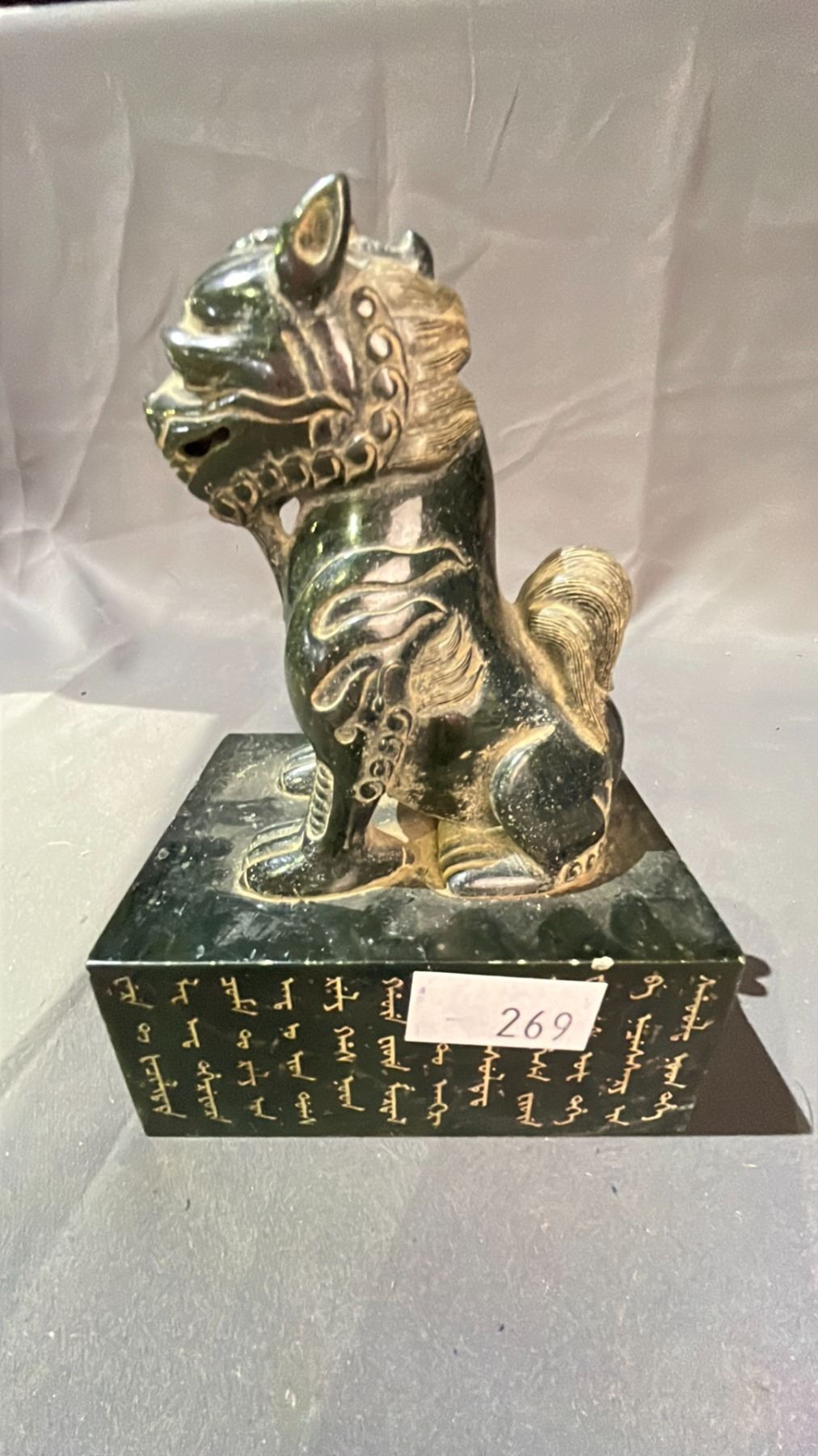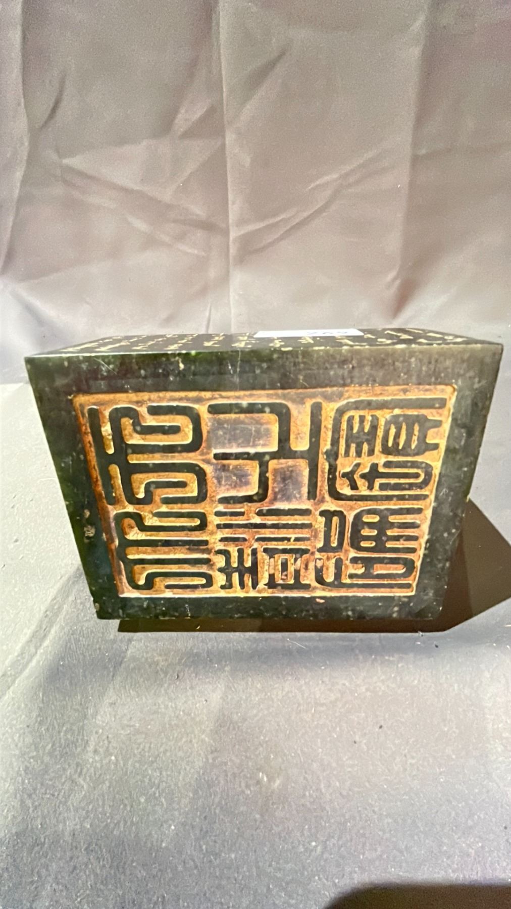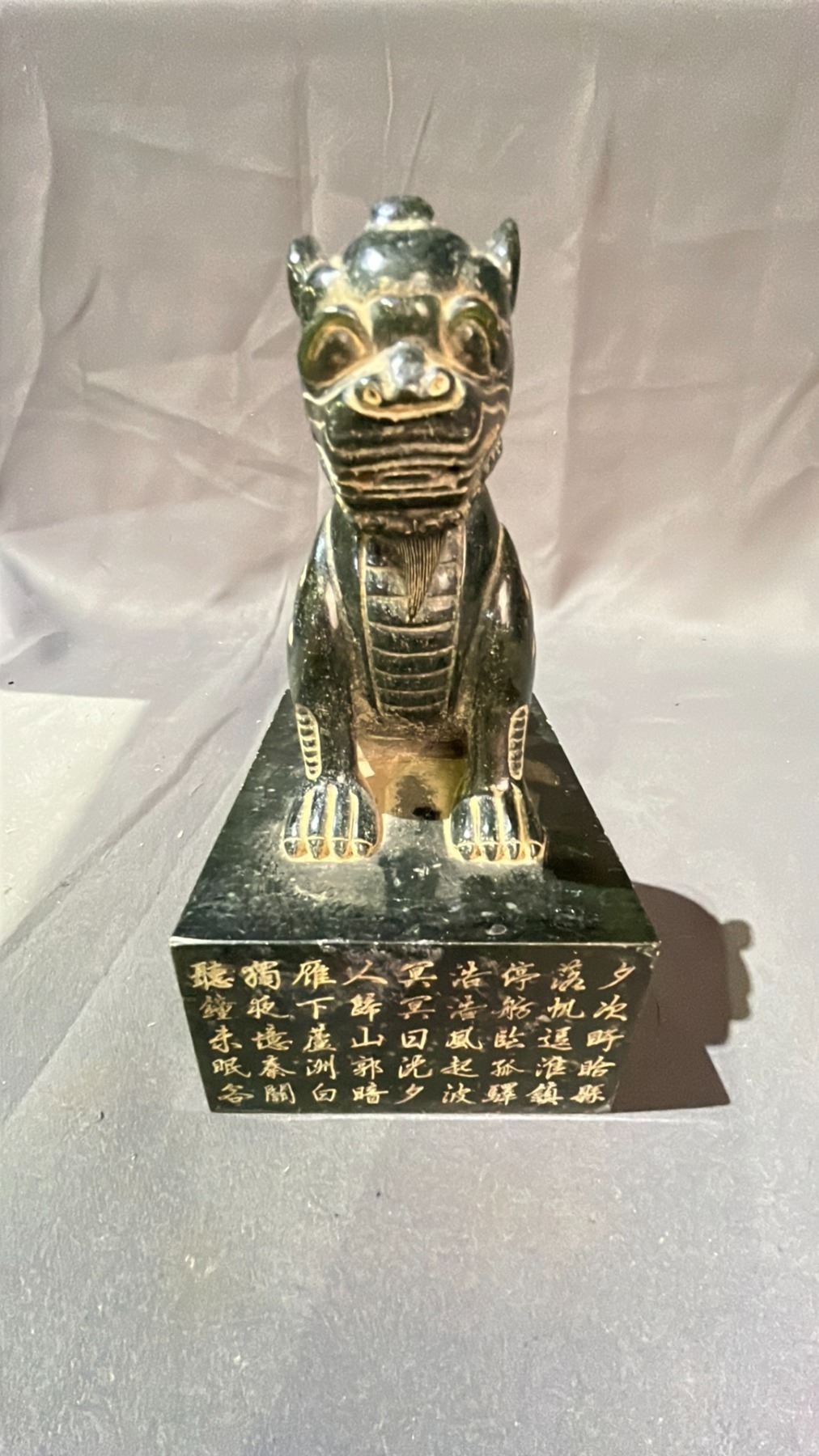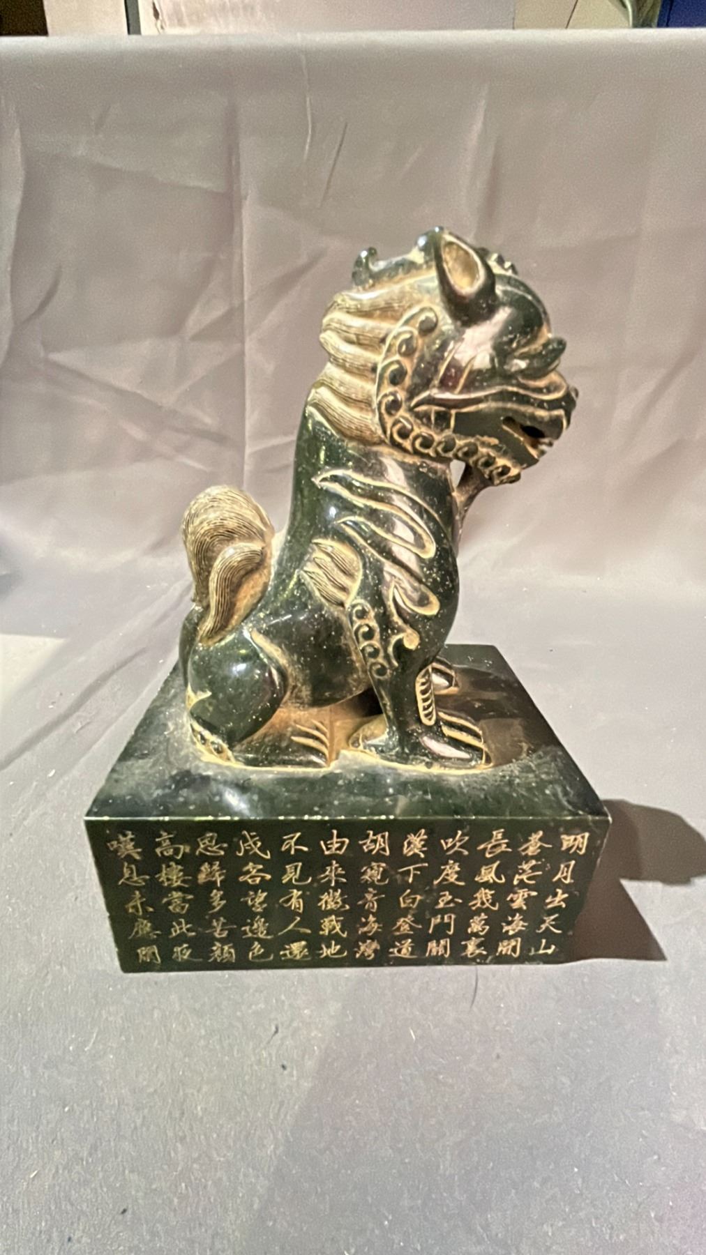 MAGNIFICENT ANTIQUE IMPERIAL MOTTLES GREEN JADE LION STAMP