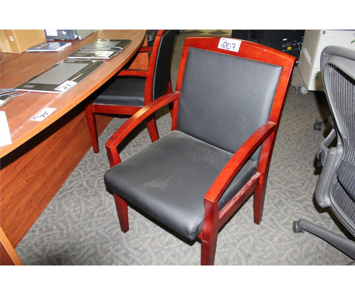 MAHAGONY FRAMED BLACK CLIENT CHAIR