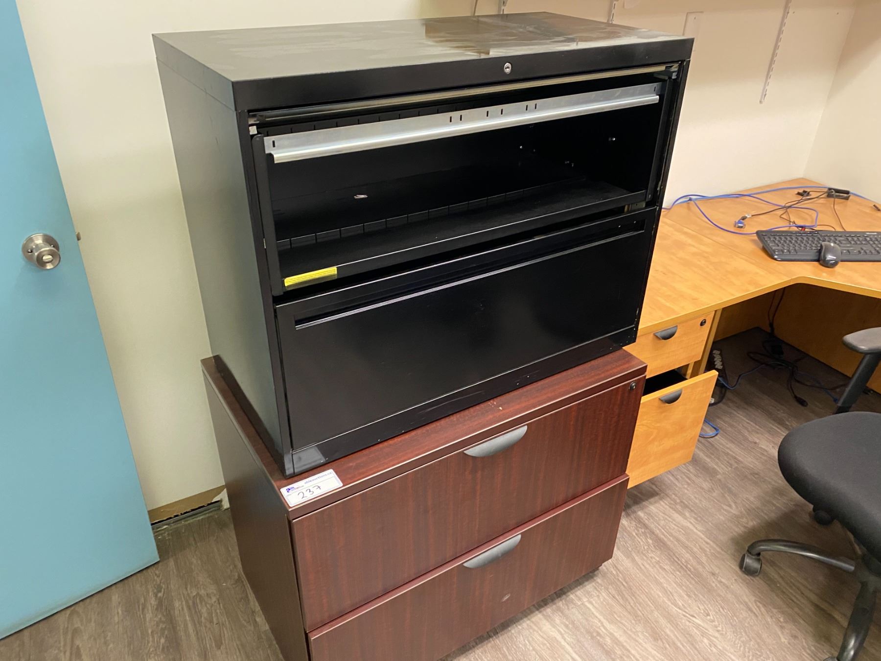 MAHOGANY 2 DRW LATERAL FILE CABINET AND BLACK 2 DRW LATERAL FILE CABINET