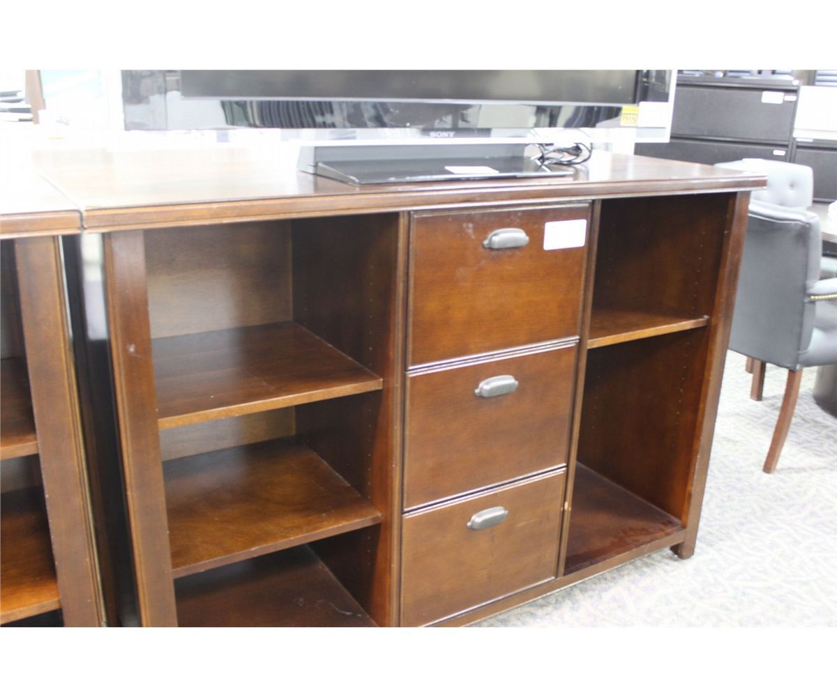 MAHOGANY 5' WALL UNIT C/W 3 FILE DRAWERS