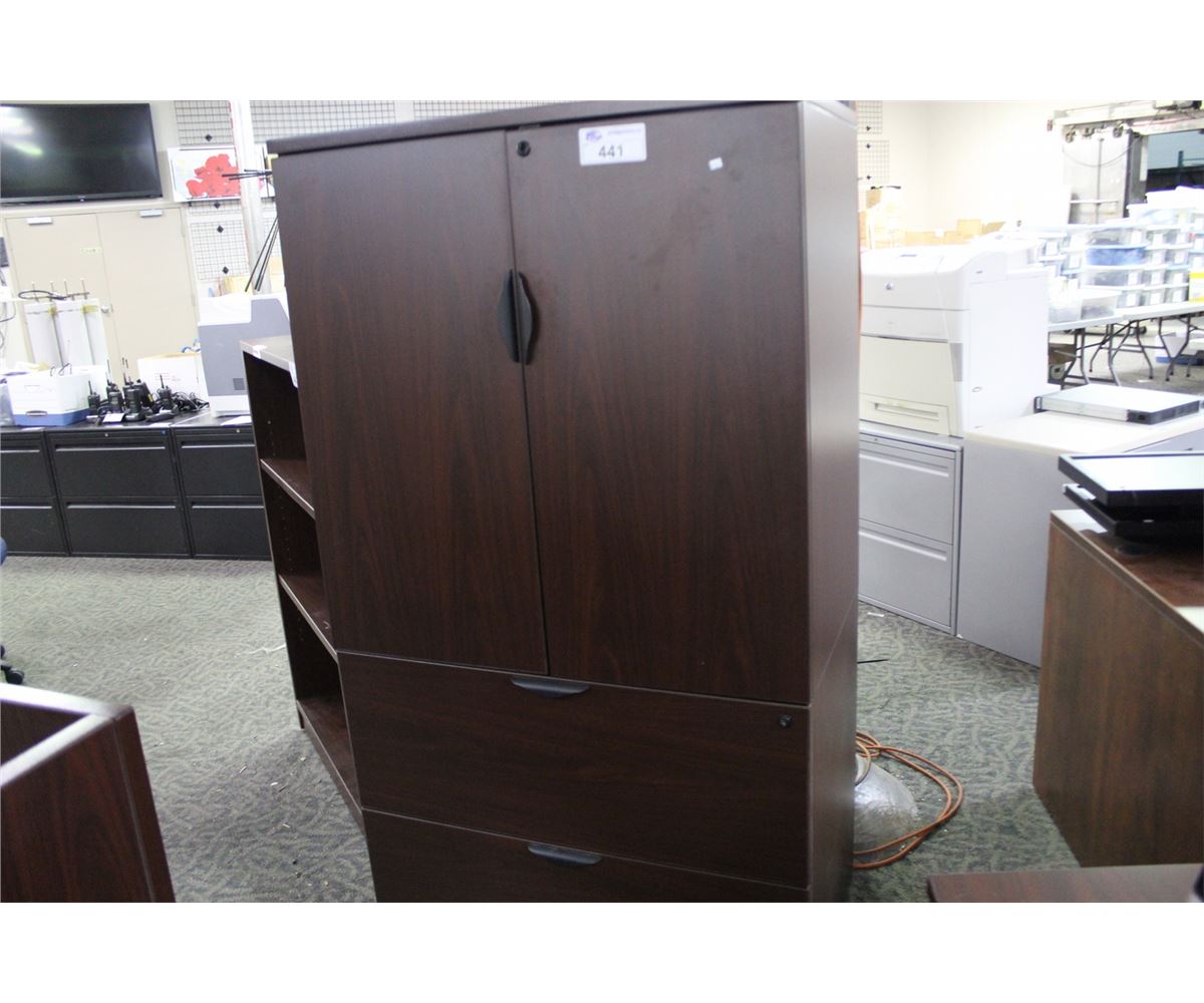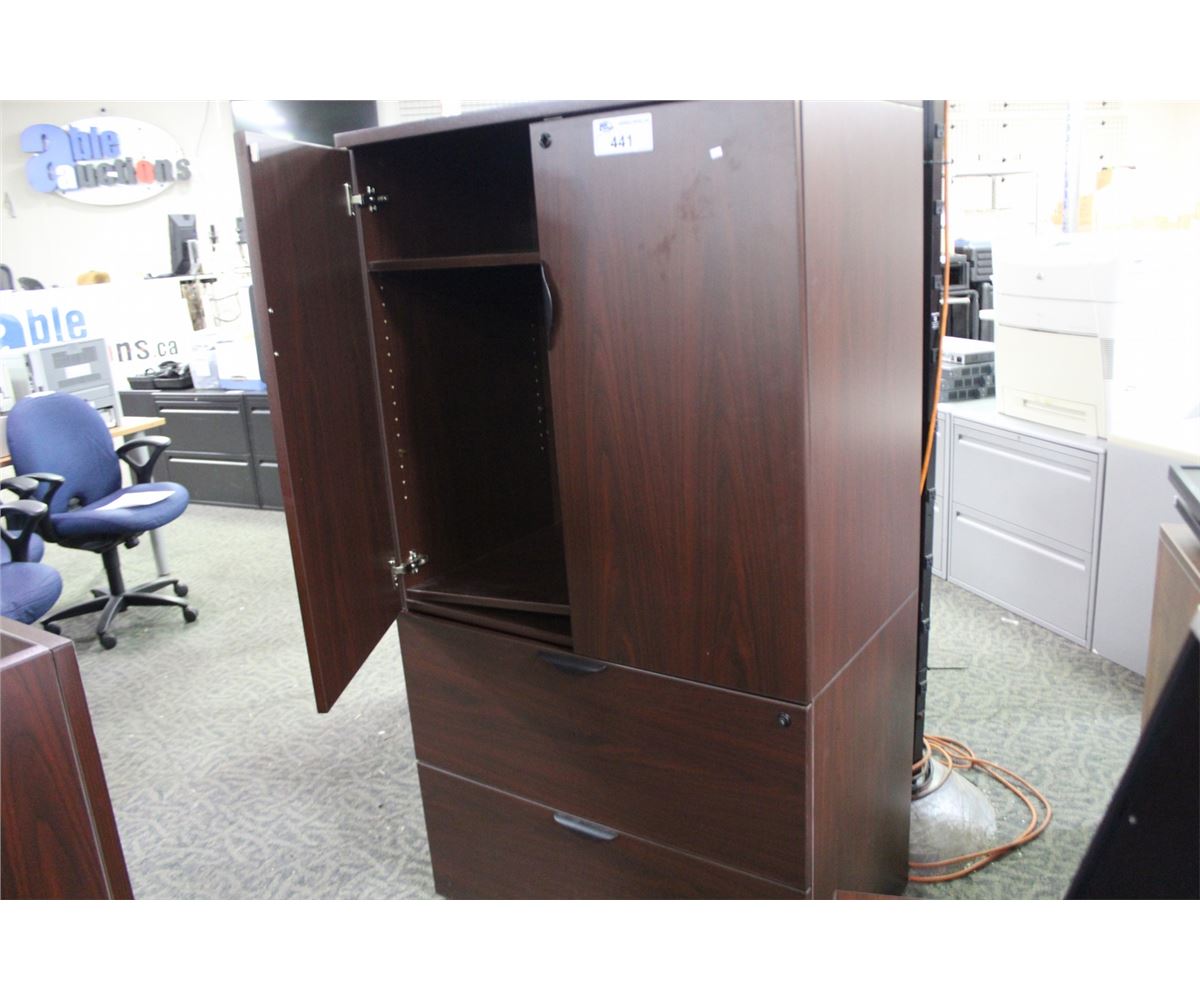 MAHOGANY 6' 2 DRAWER LATERAL FILE CABINET/CUPBOARD COMBO